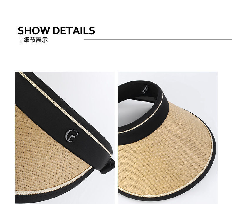 夏日烈阳,躲闪草帽大檐;肌肤呵护,UV防晒有心;舒适透气,头顶清凉空顶;折叠轻巧,蜻蜓点水自在。女神必备,时尚遮阳方便携带!