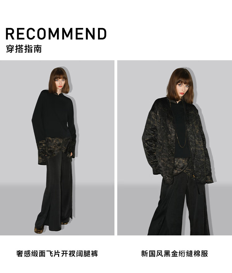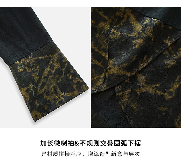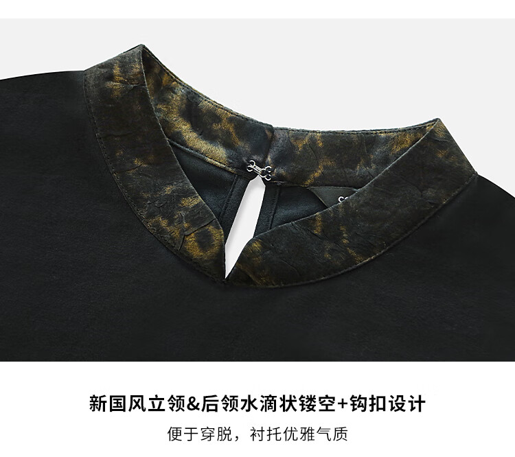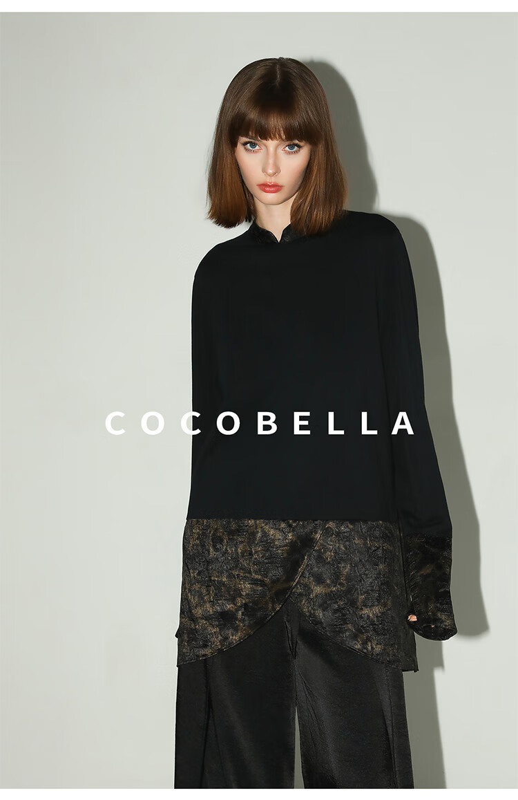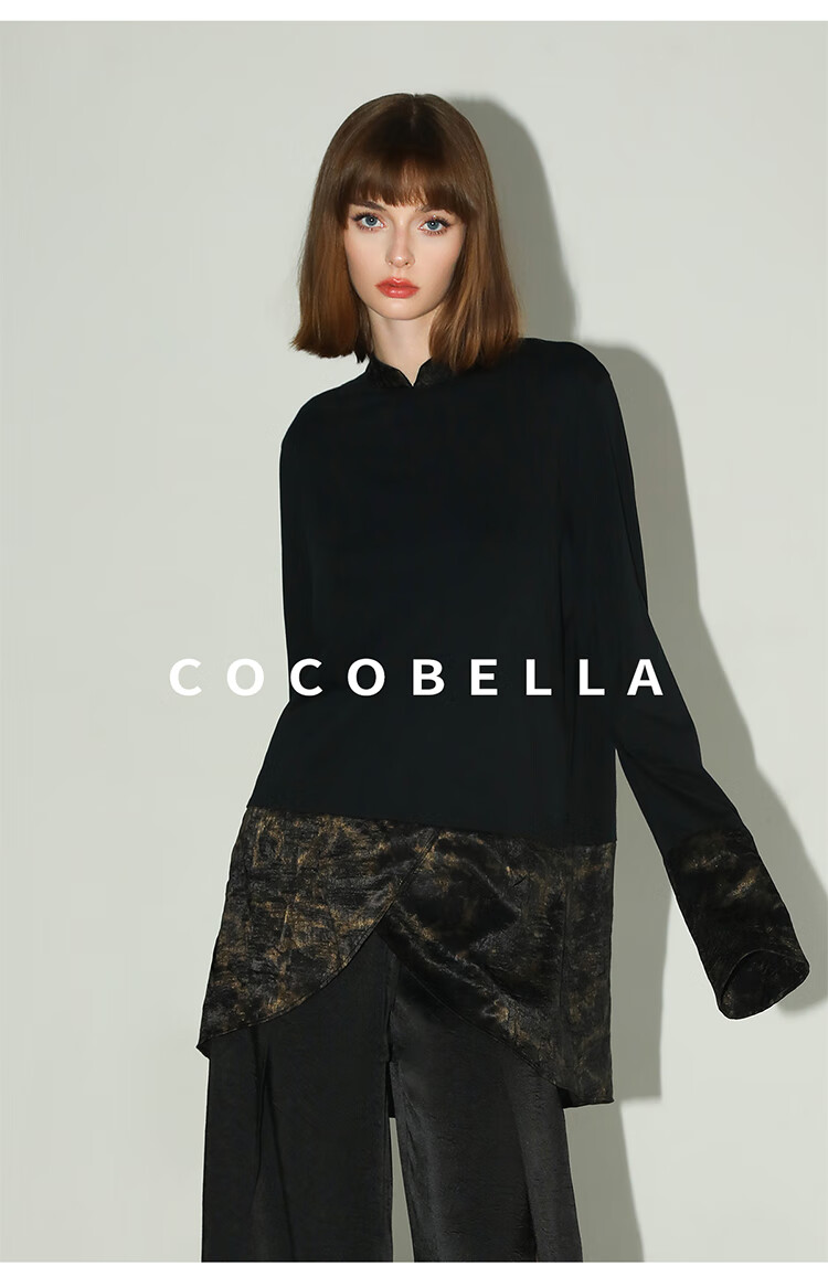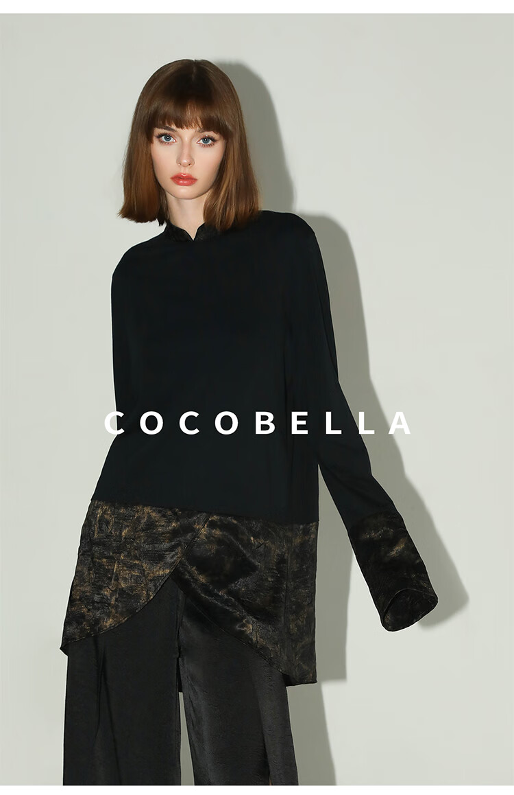 【秒杀】COCOBELLA烫金缎面拼接针织衬衫早春新中式小立领衬衣SR0051