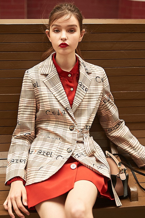 OECE CHIC个性字母格纹西装外套 15393