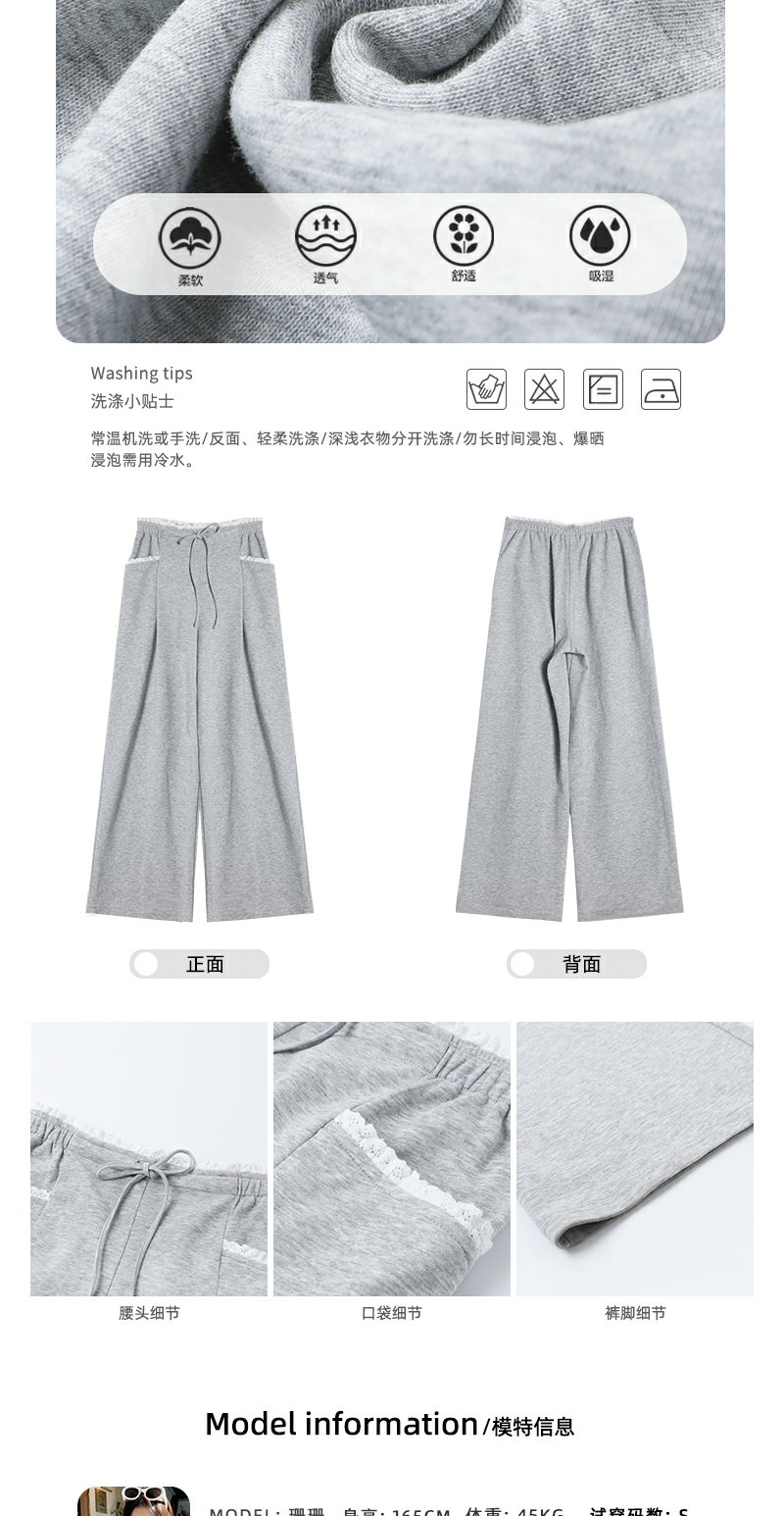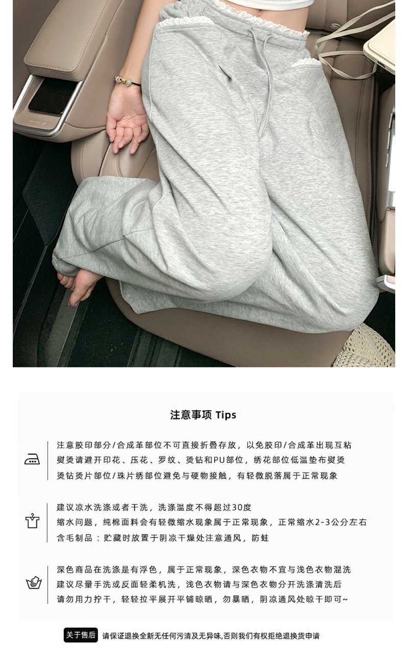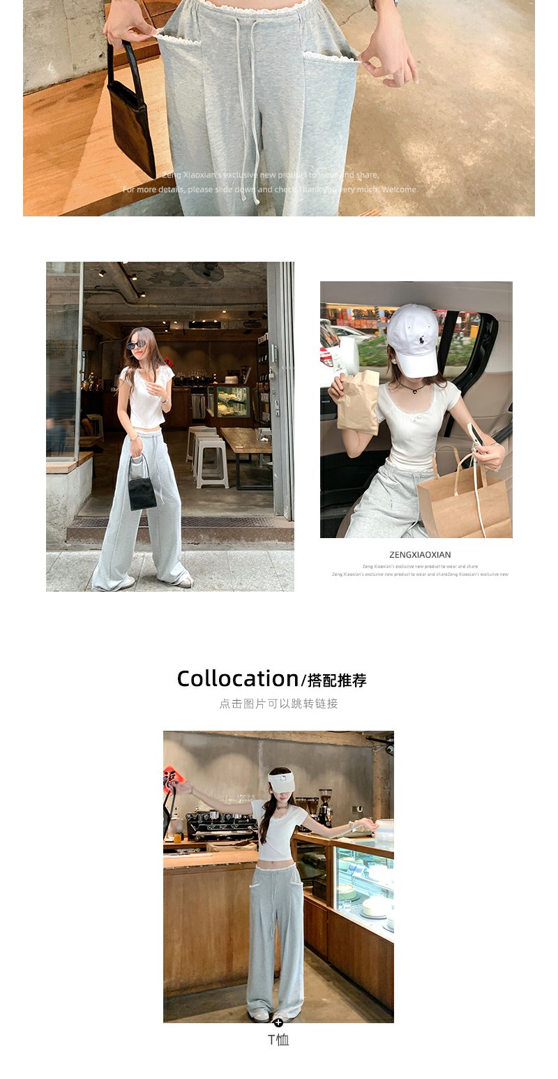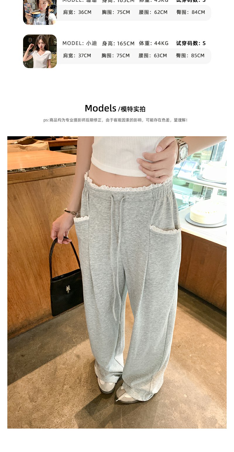 <曾小咸推荐>设计感蕾丝花边拼接休闲裤宽松垂感