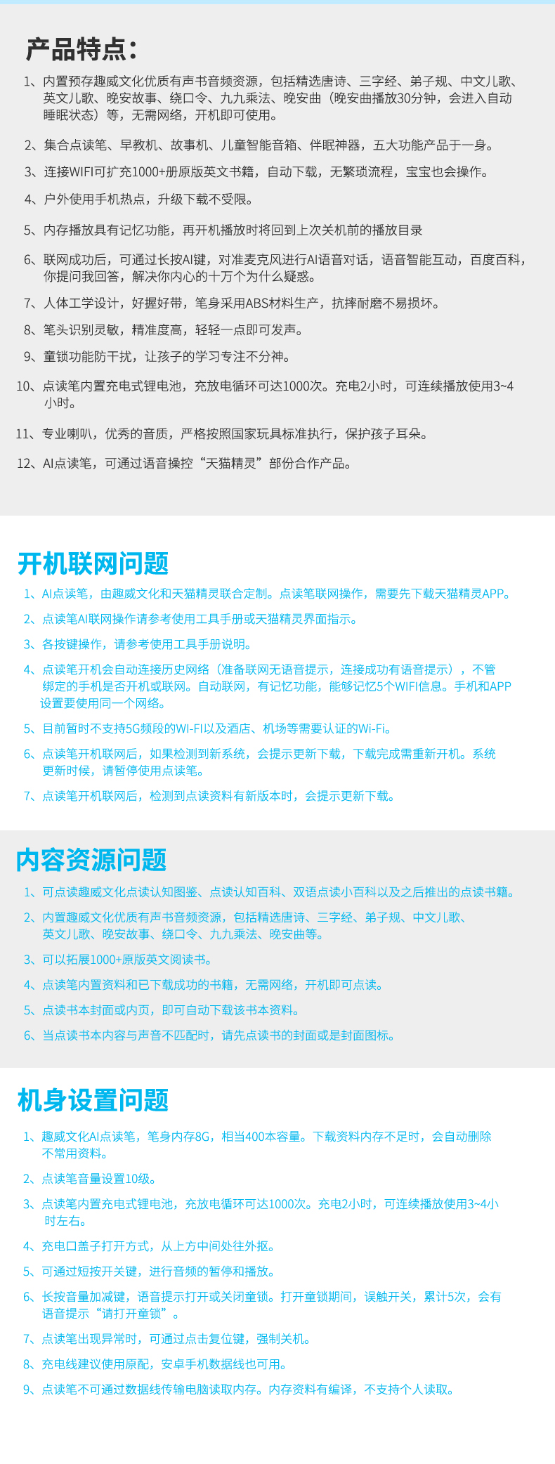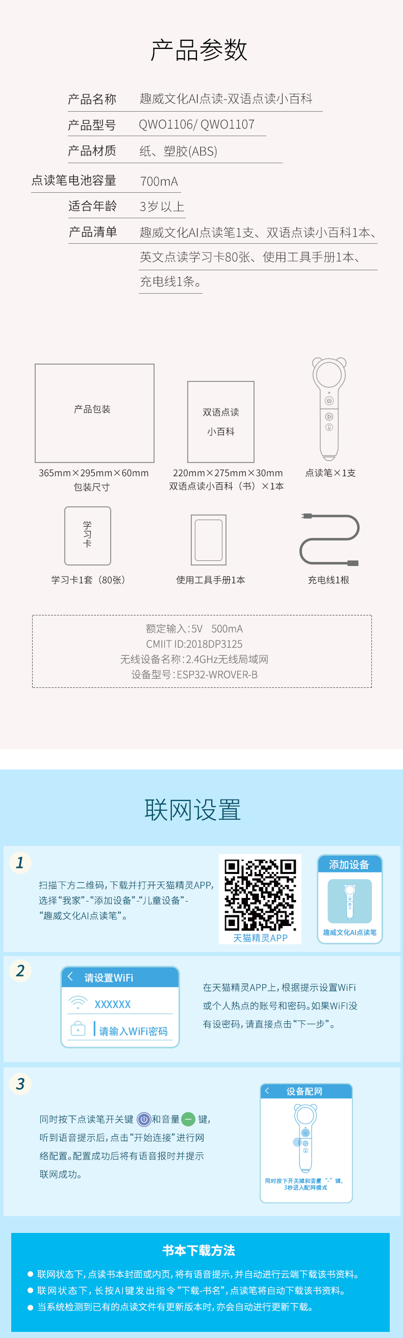 趣威文化AI点读小百科套装1-4岁内置天猫精灵点读笔3代早教学习机(厂家直发包邮)