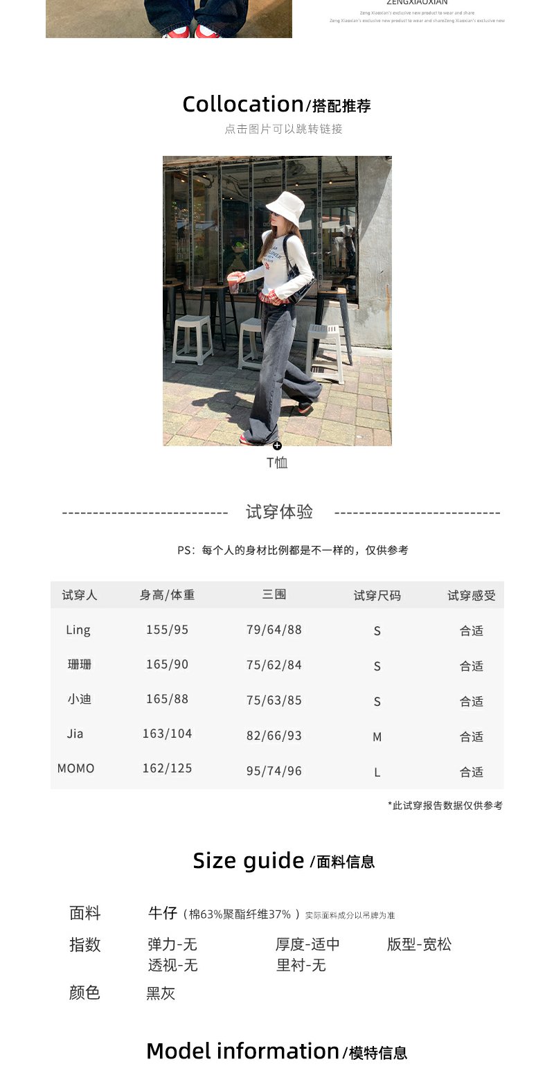 【189元任选2件】现货!黑灰色牛仔微喇裤