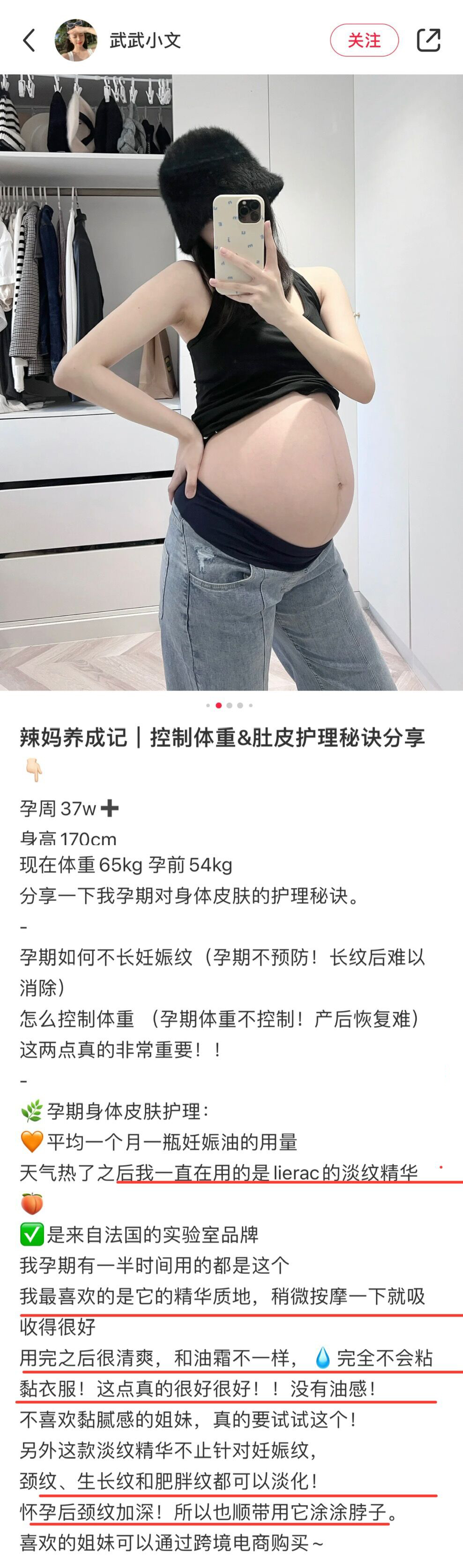 这款精华还是我闺蜜推荐给我的呢,她孕期和产后都在用,她说没变“花肚皮”,全靠控制体重+坚持用它!用了这款精华之后,妊娠纹的长度、深度、颜色都有改善!而且她生完小孩后减月巴,当时瘦的比较猛,皮肤变得很松弛,而且还有些纹路,用这个精华淡化效果非常好