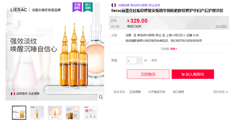【商品名称】Lierac丽蕾克妊娠纹修复安瓶精华