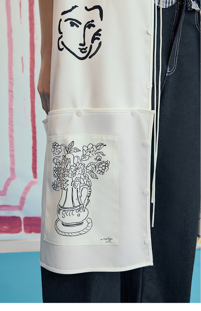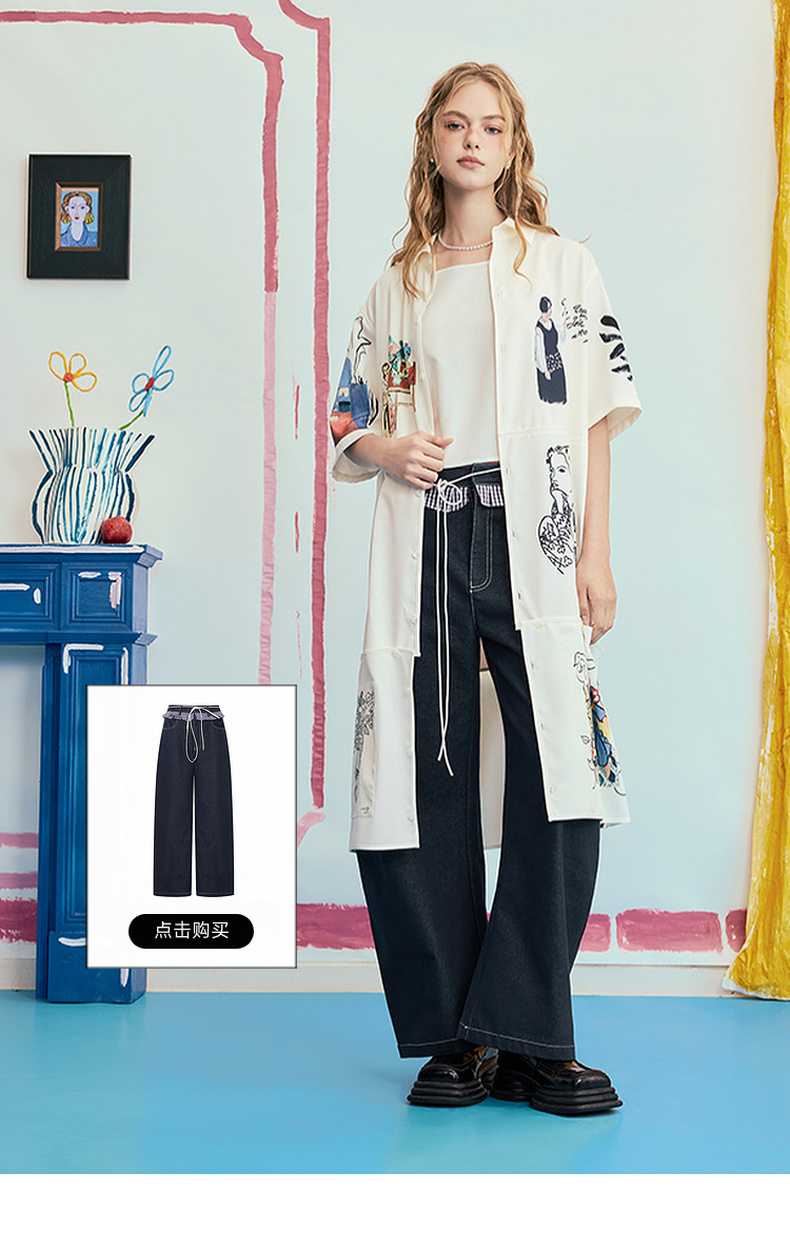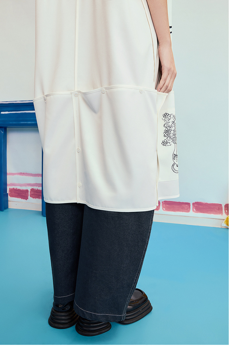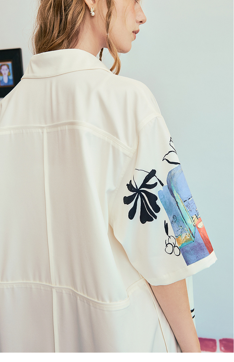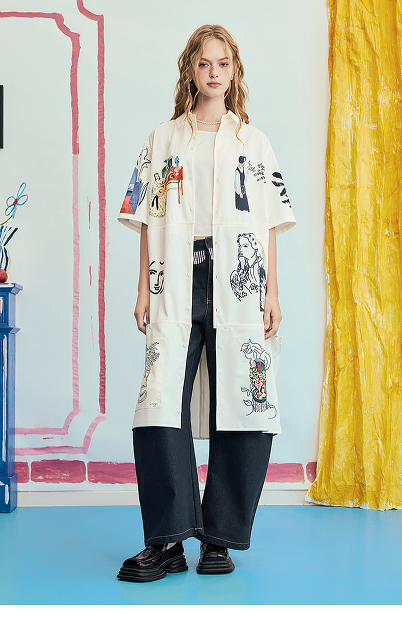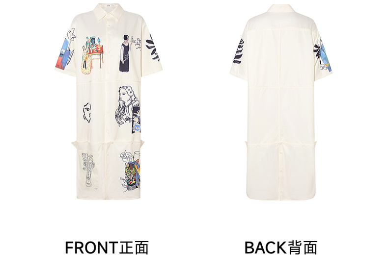 两三事 安妮心事 2025夏季新款时尚可拆下摆涂鸦印花衬衫女中长款