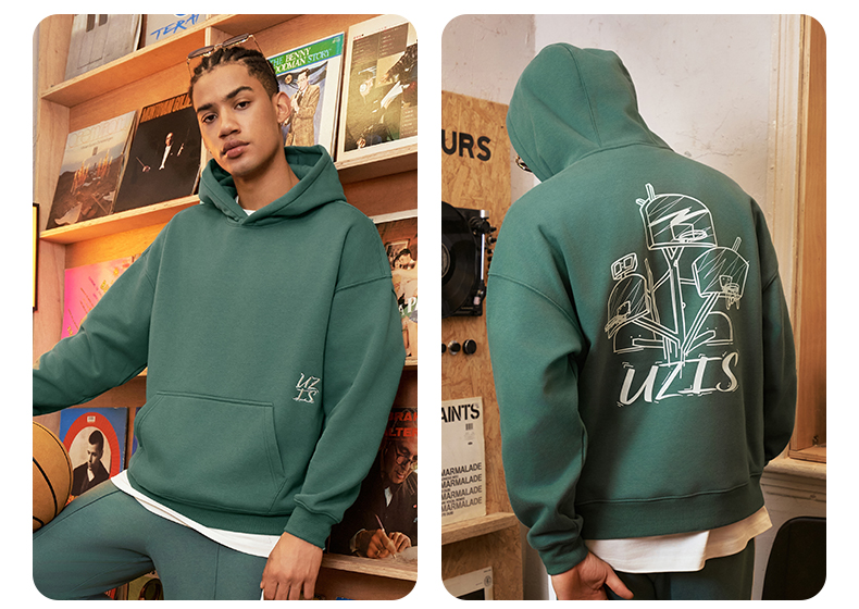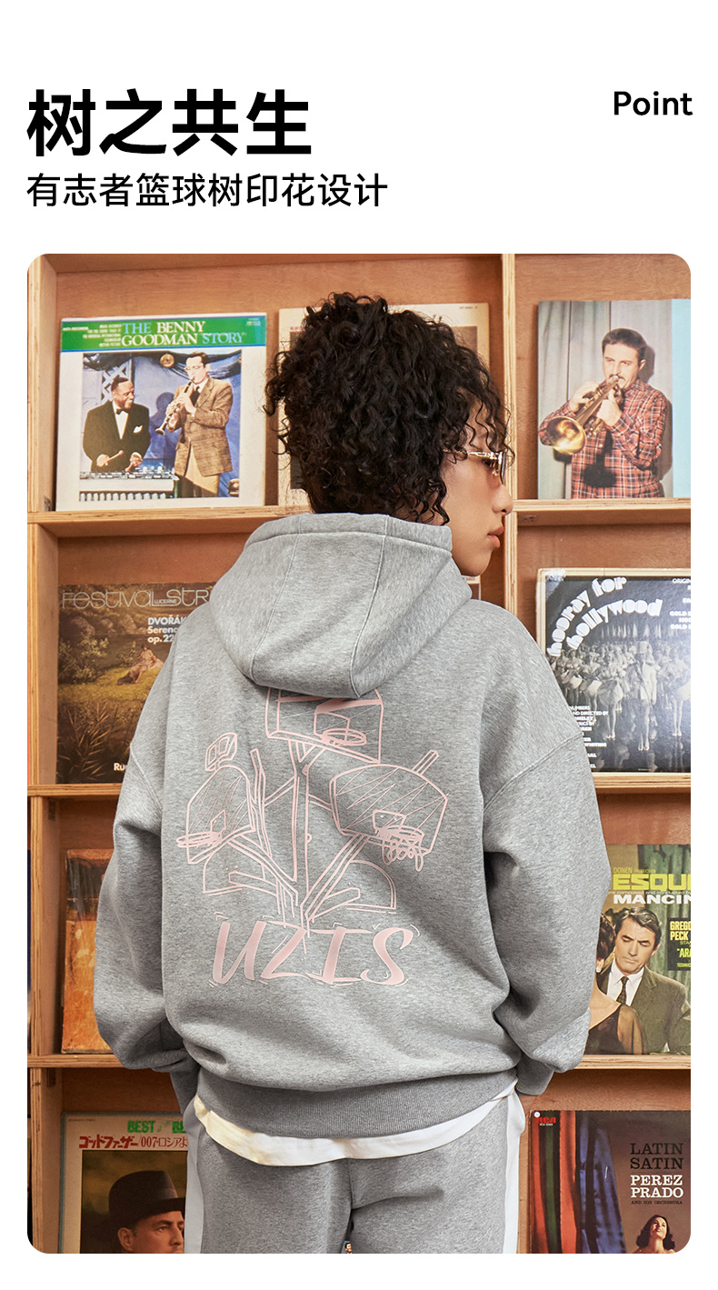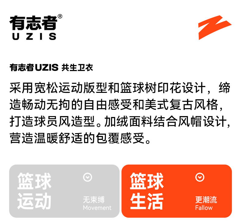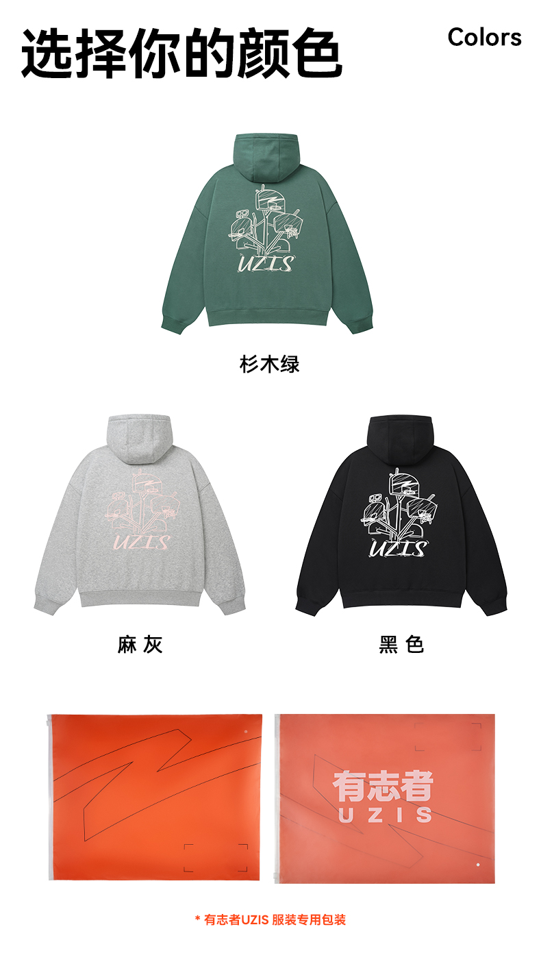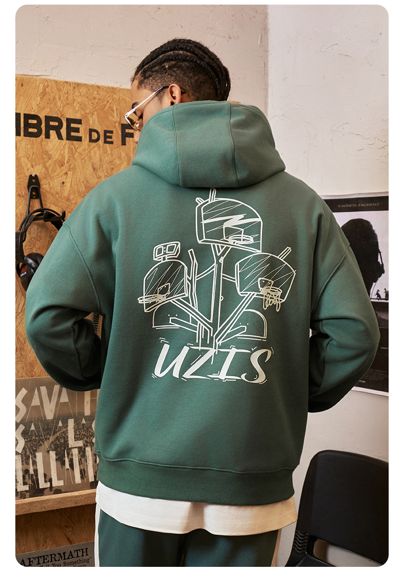 有志者UZIS 美式篮球运动卫衣男秋冬重磅抓绒保暖连帽套头衫[共生