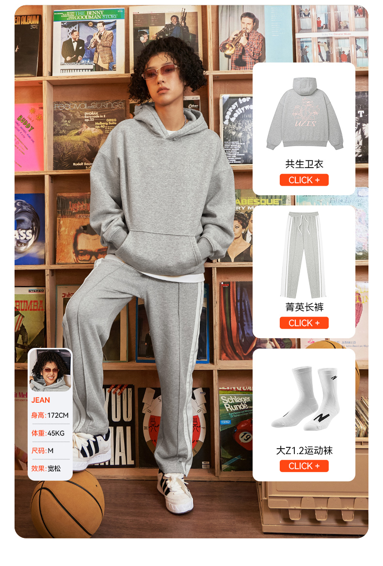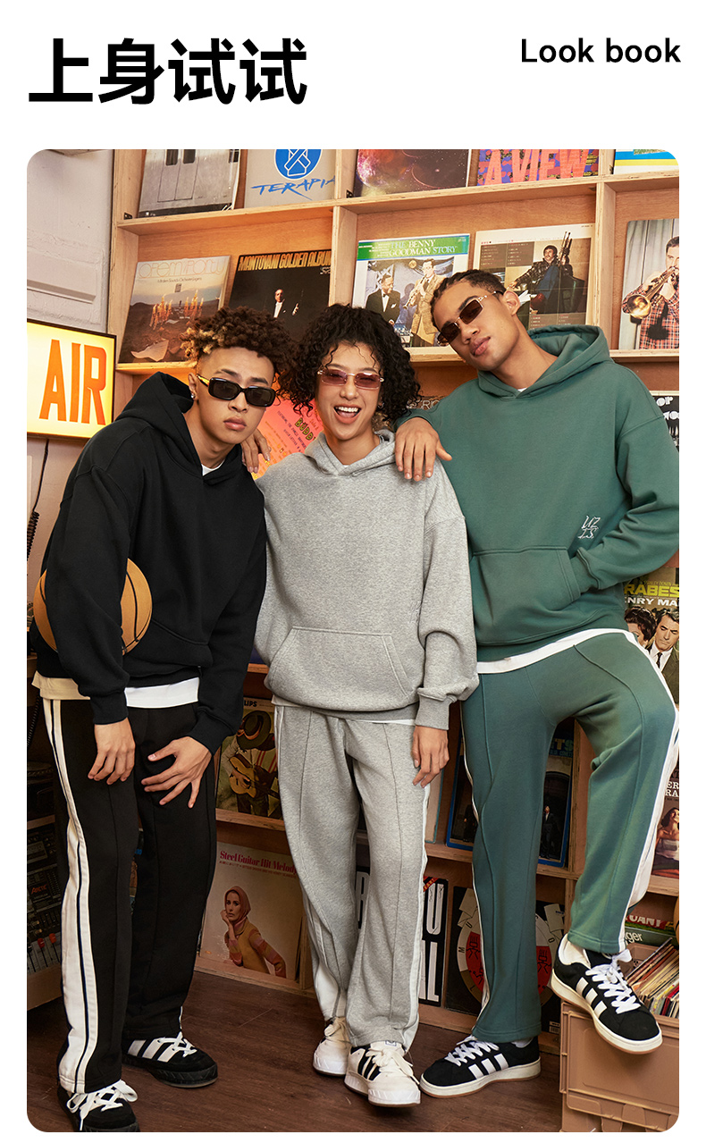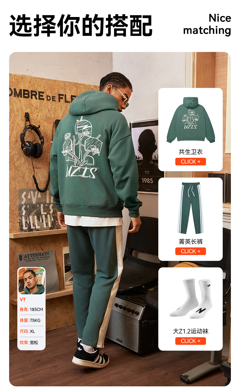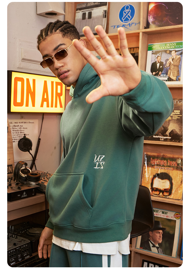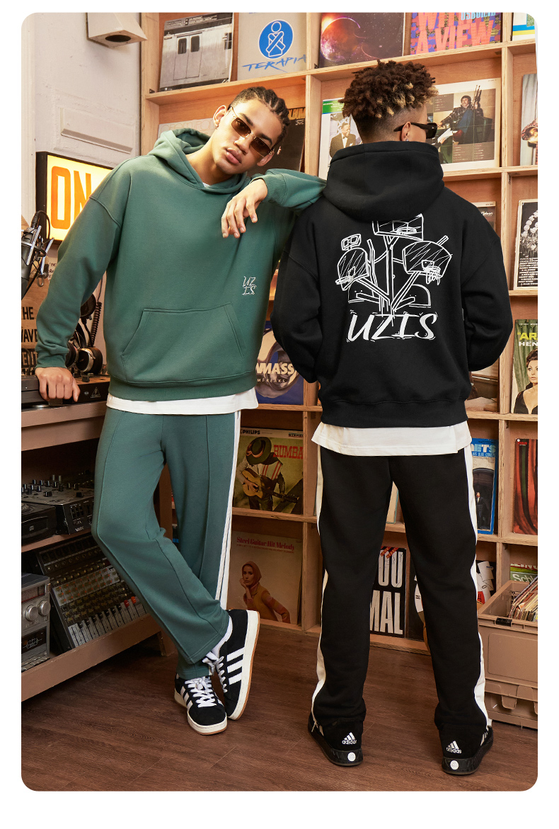 有志者UZIS 美式篮球运动卫衣男秋冬重磅抓绒保暖连帽套头衫[共生