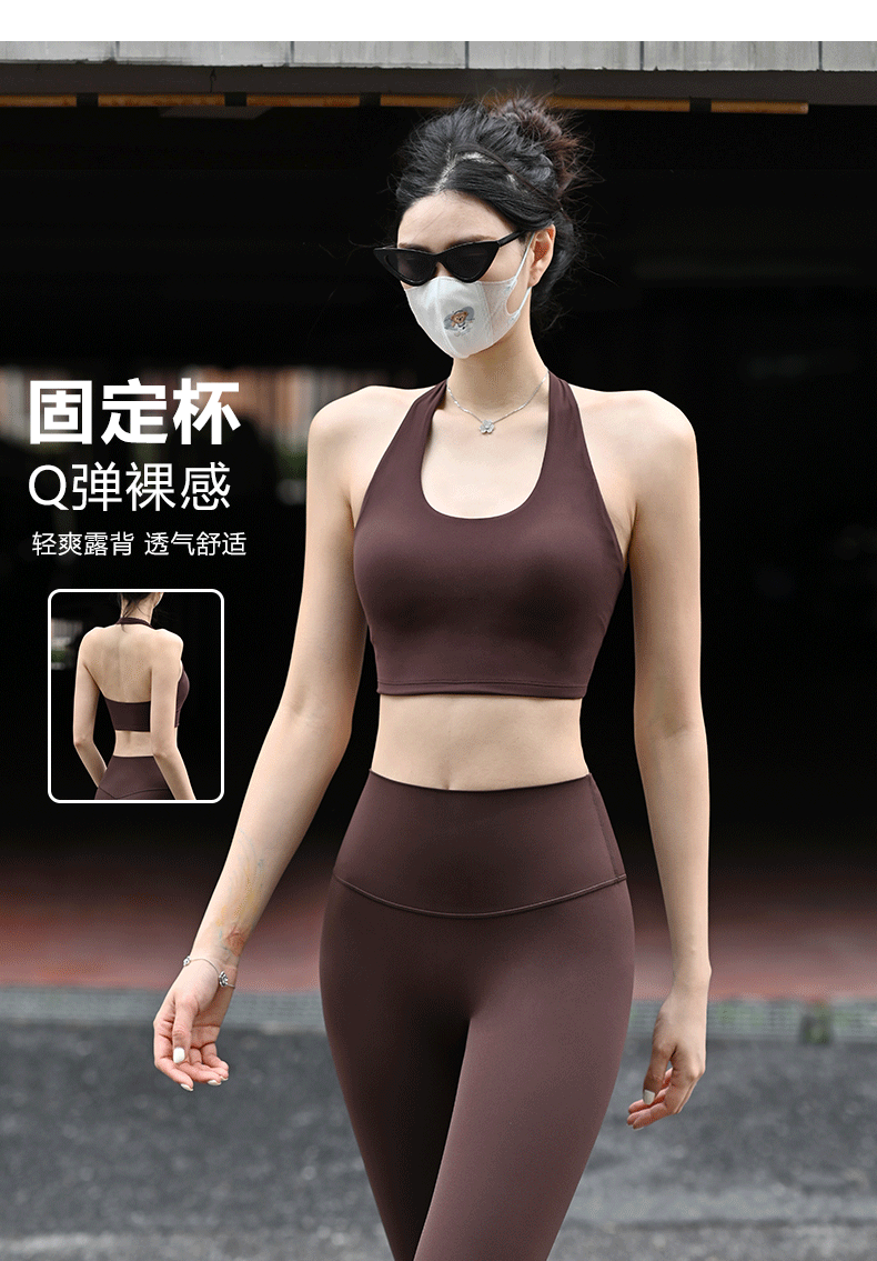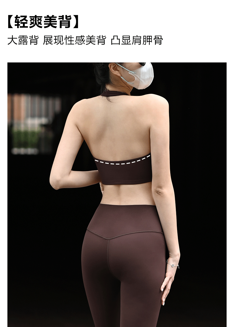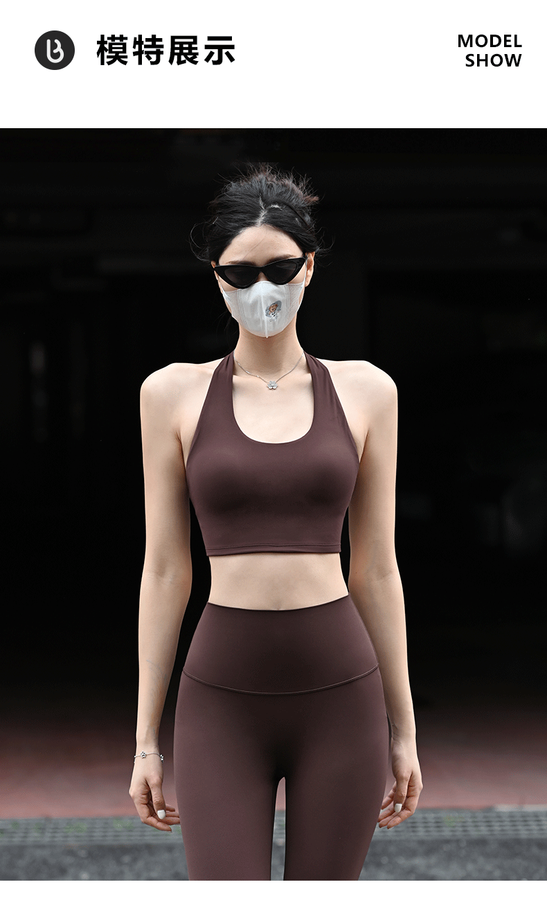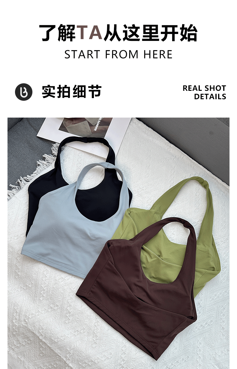 Beemen莱卡挂脖背心 一体式带胸垫低强度运动内衣美背 健身瑜伽服