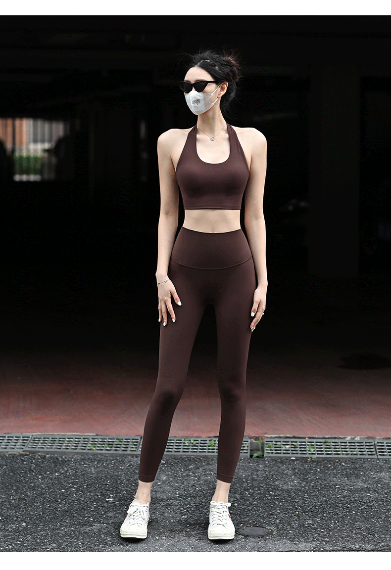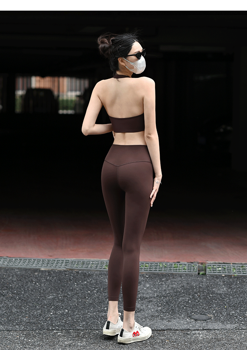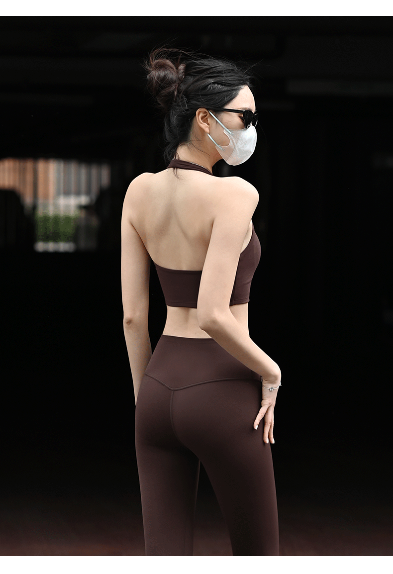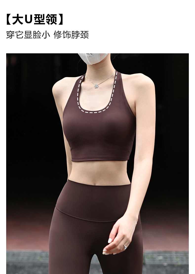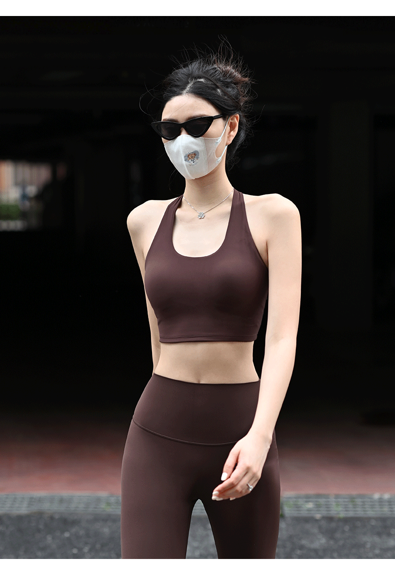 Beemen莱卡挂脖背心 一体式带胸垫低强度运动内衣美背 健身瑜伽服