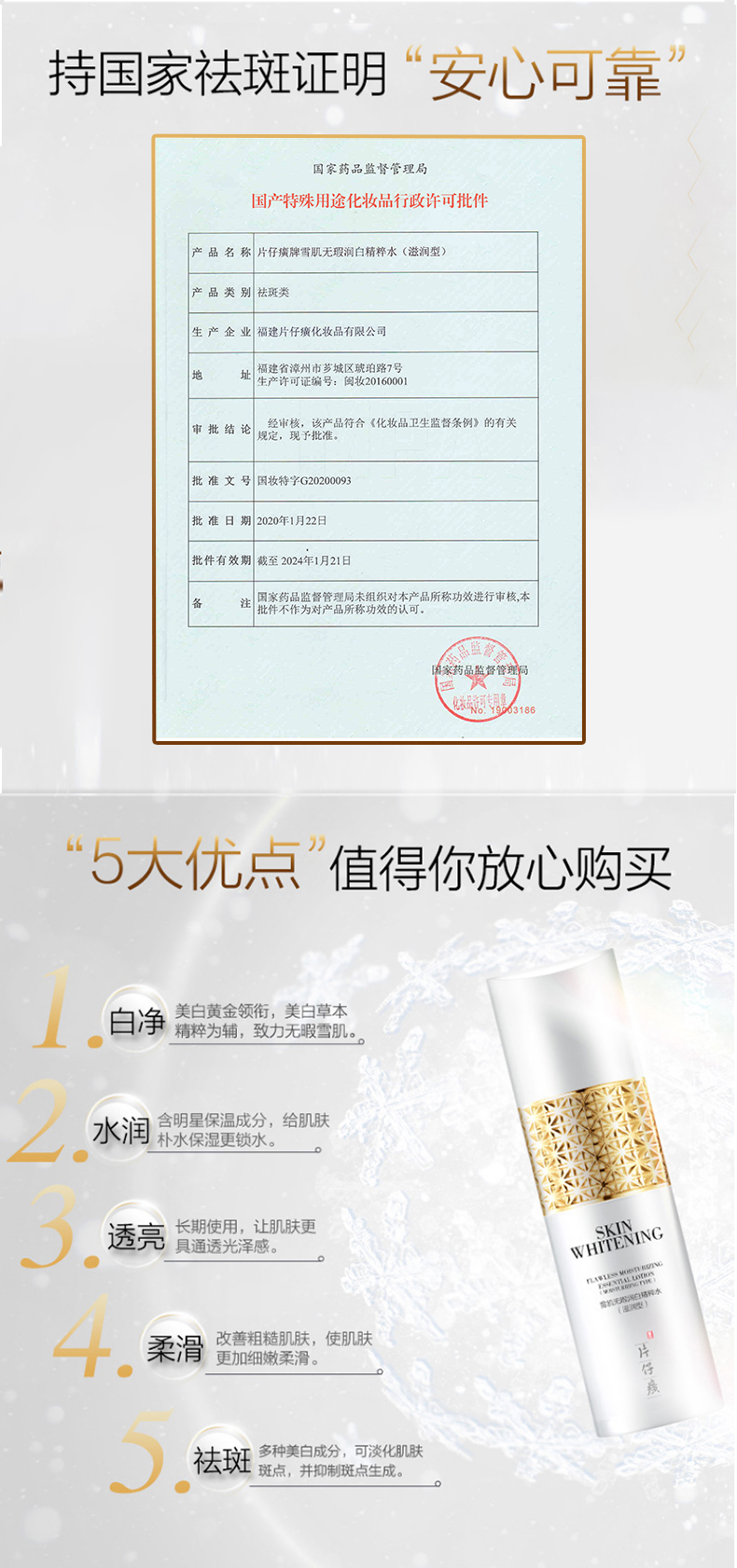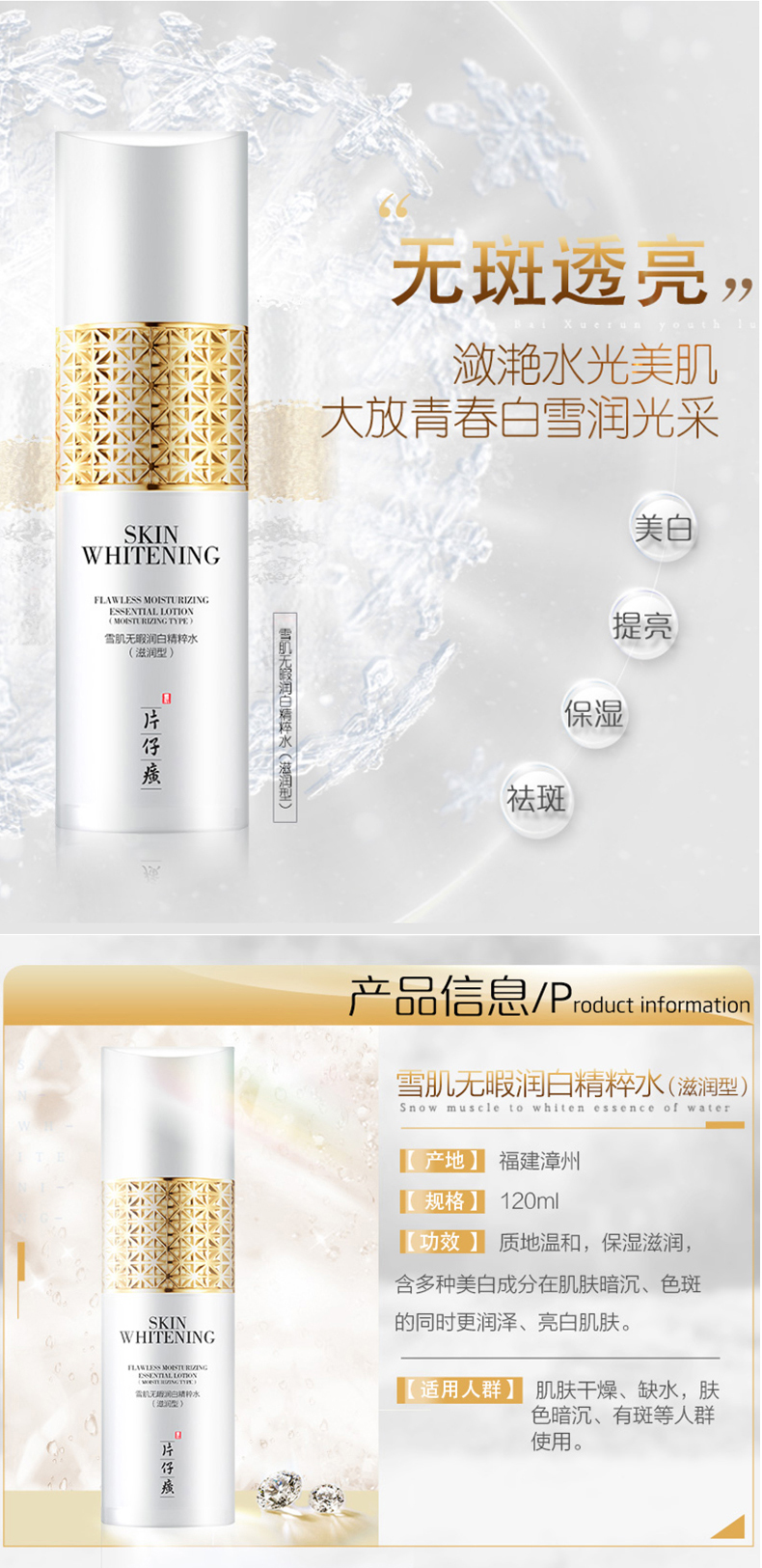 片仔癀牌雪肌无瑕润白精粹水滋润型美白爽肤水女补水保湿化妆水