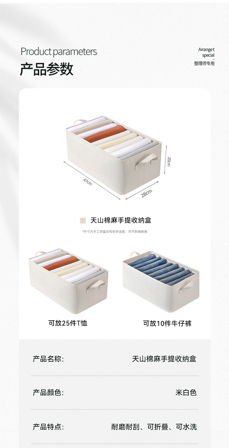 天山棉麻收纳盒家用布艺收纳神器衣服裤子手提收纳筐