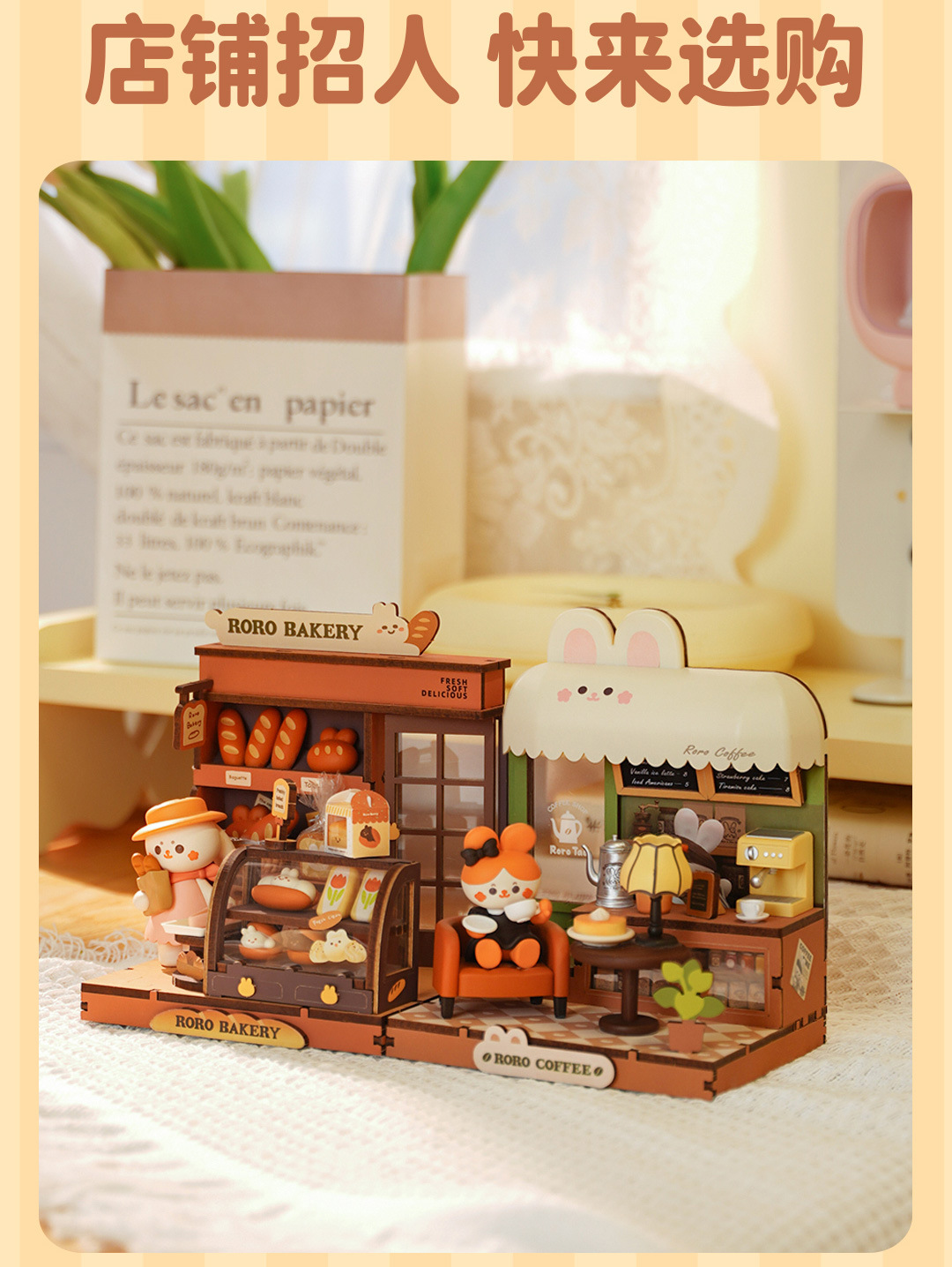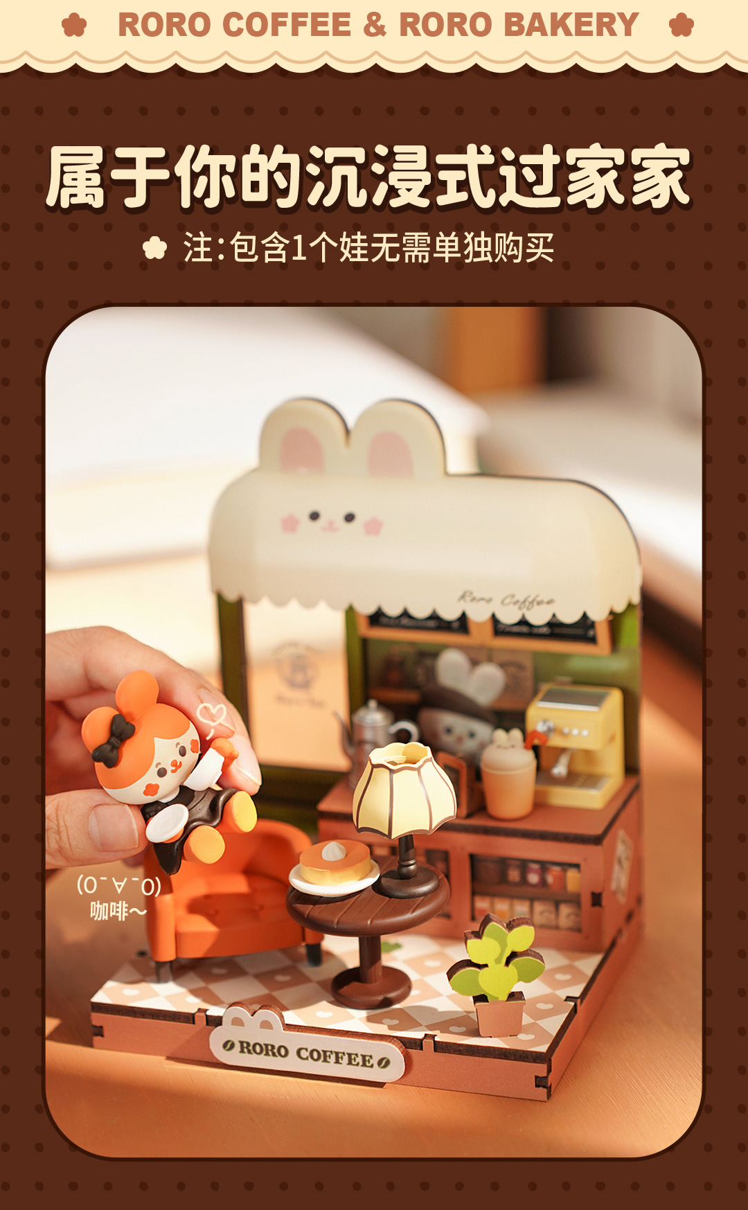 若客新款阮阮食玩微缩场景我的小小朋友 阮阮咖啡店 diy小屋模型手工礼物女