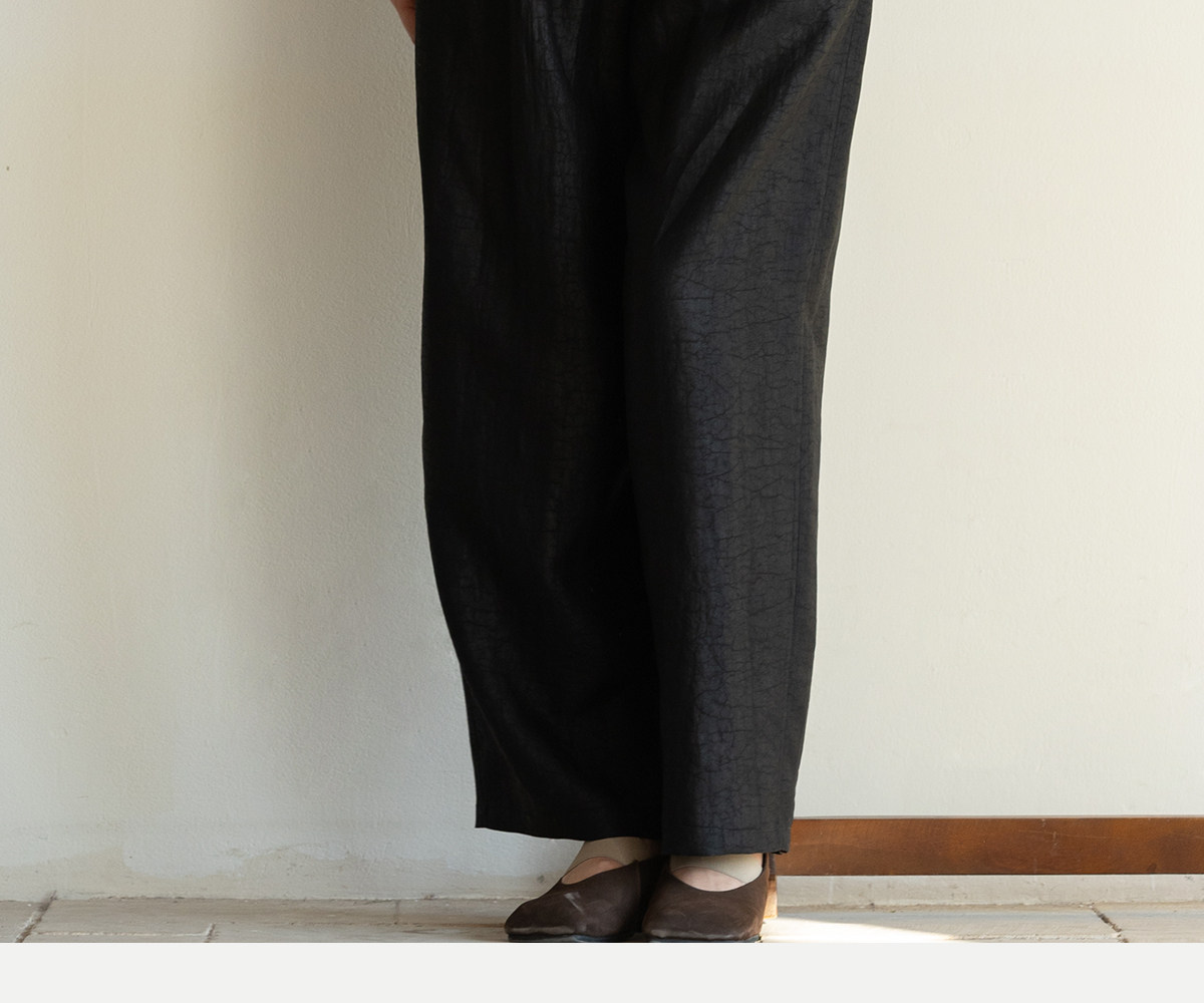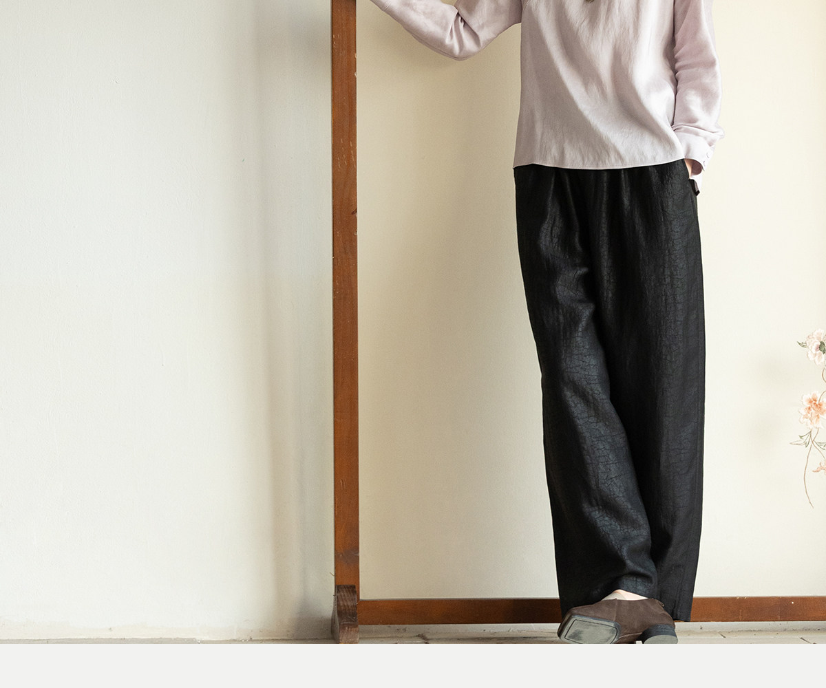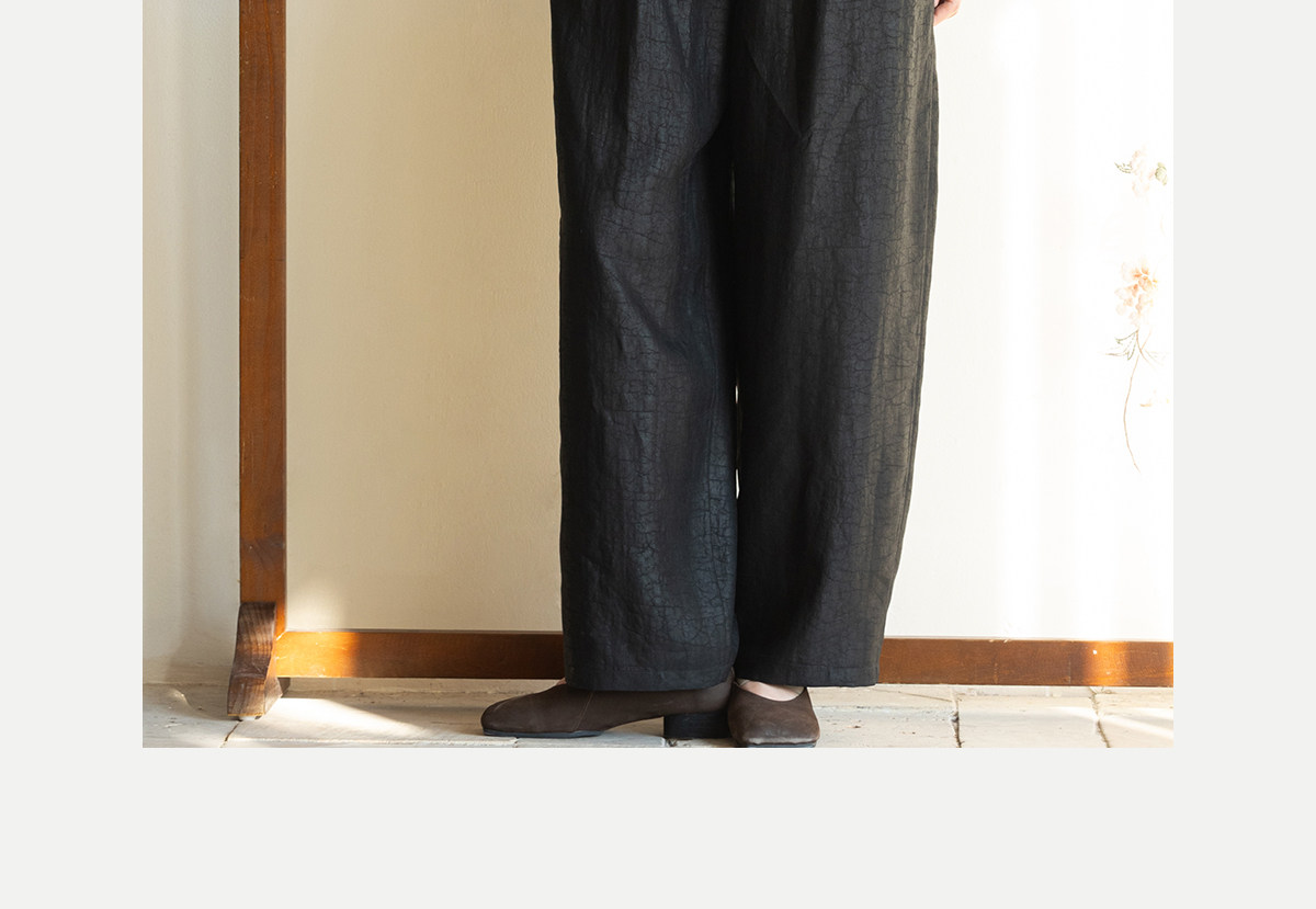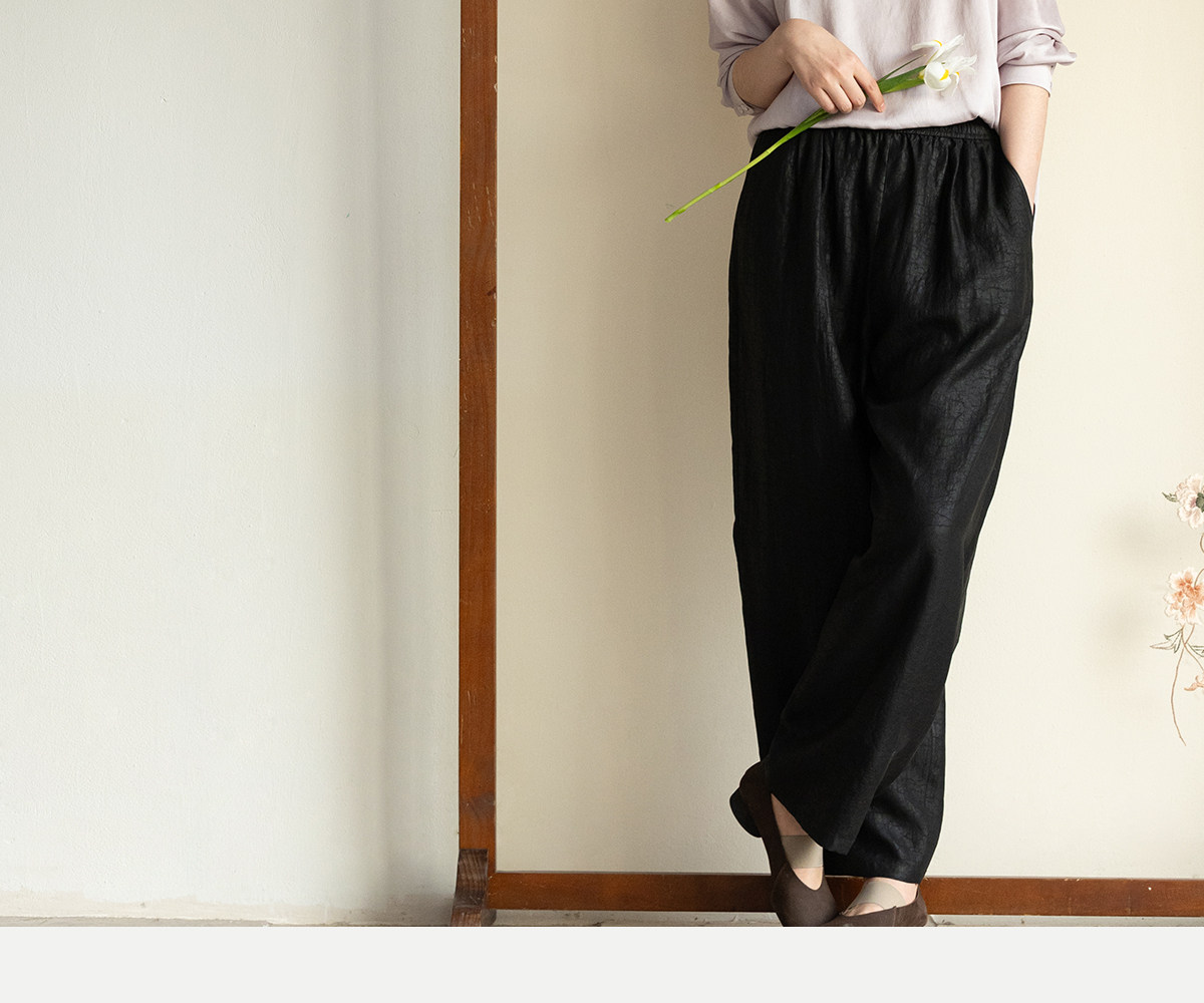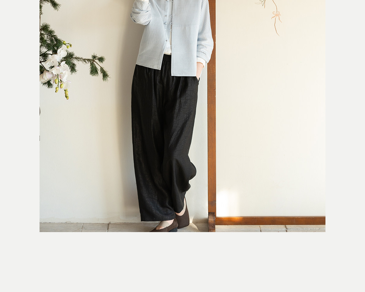 牧衣游原创 重磅龟裂纹香云纱休闲长裤垂感显瘦禅意百搭裤子 初山