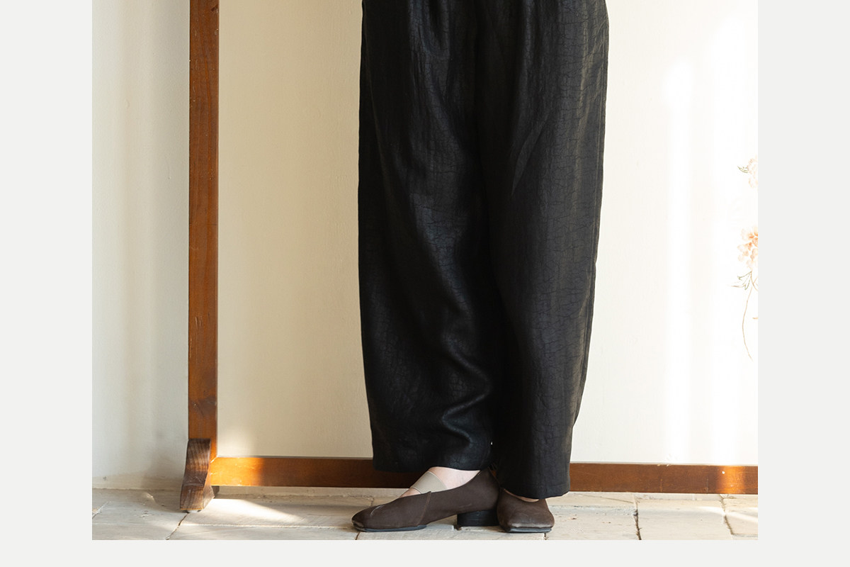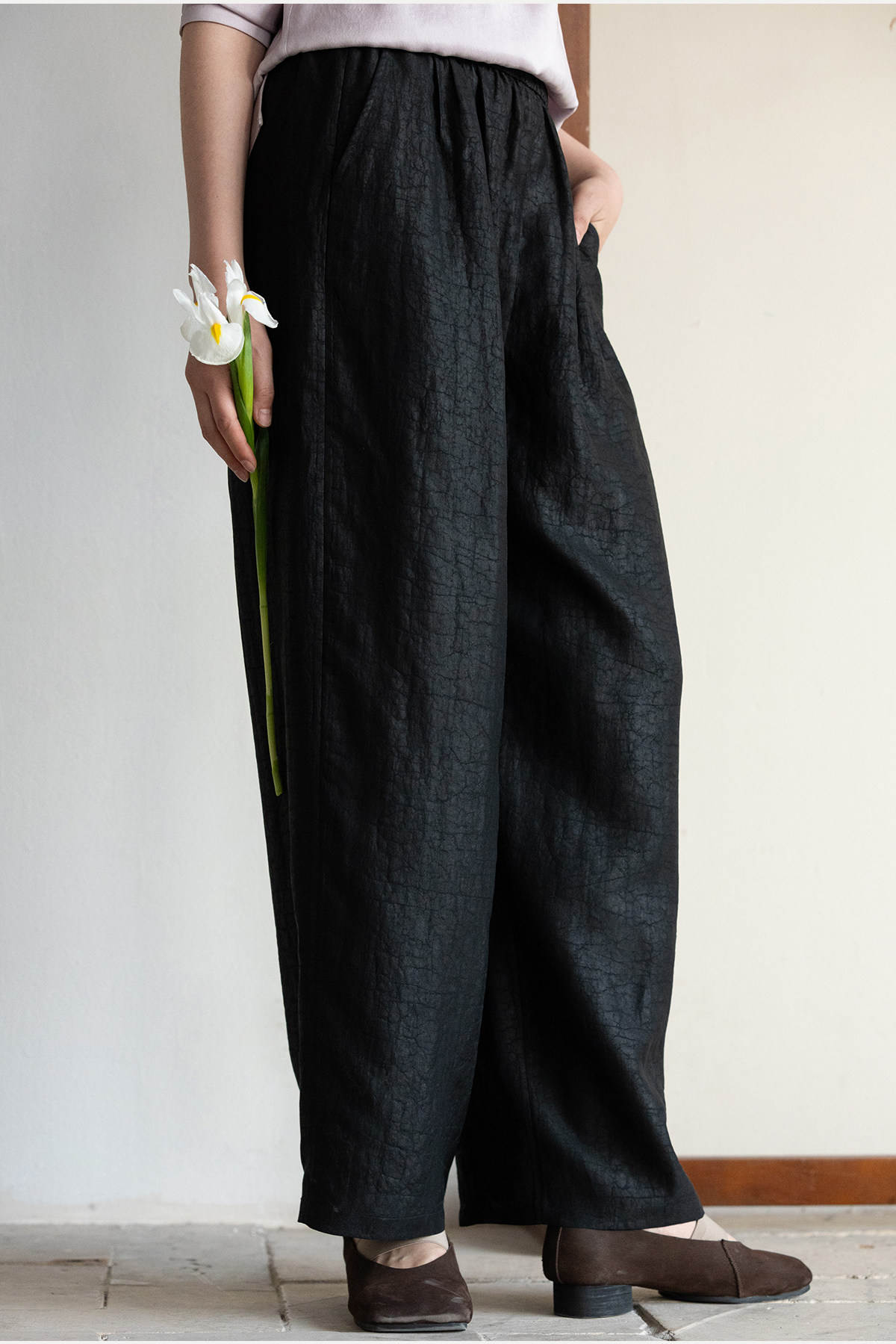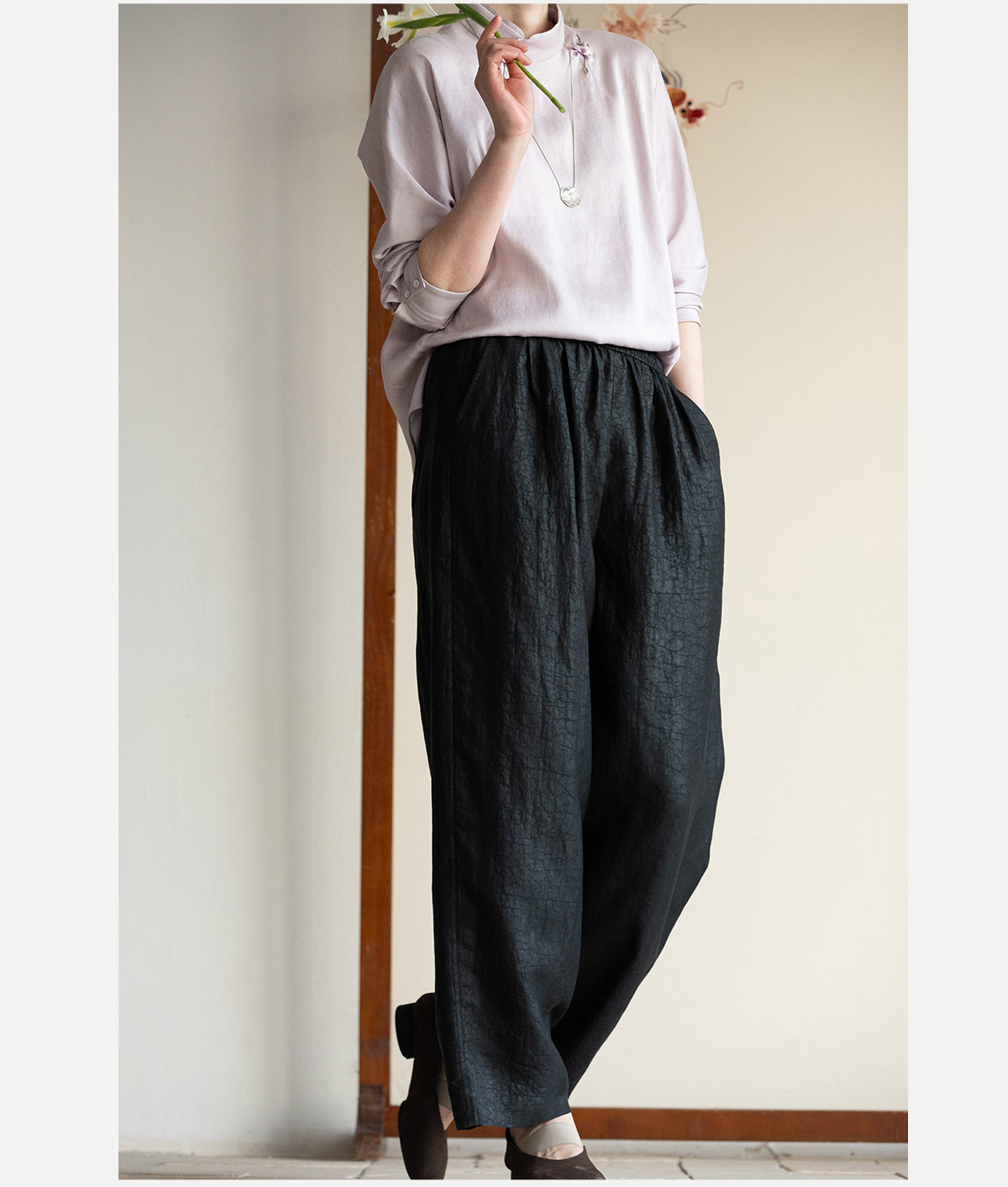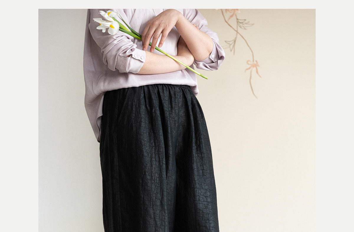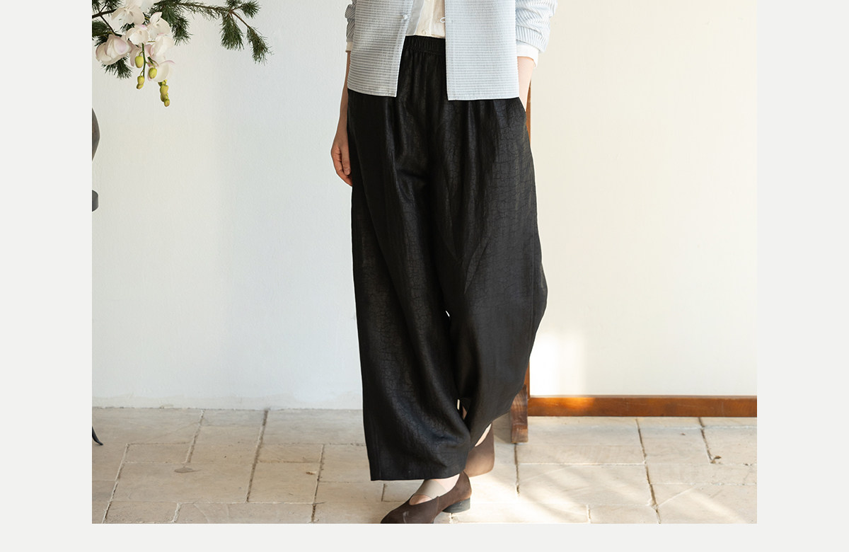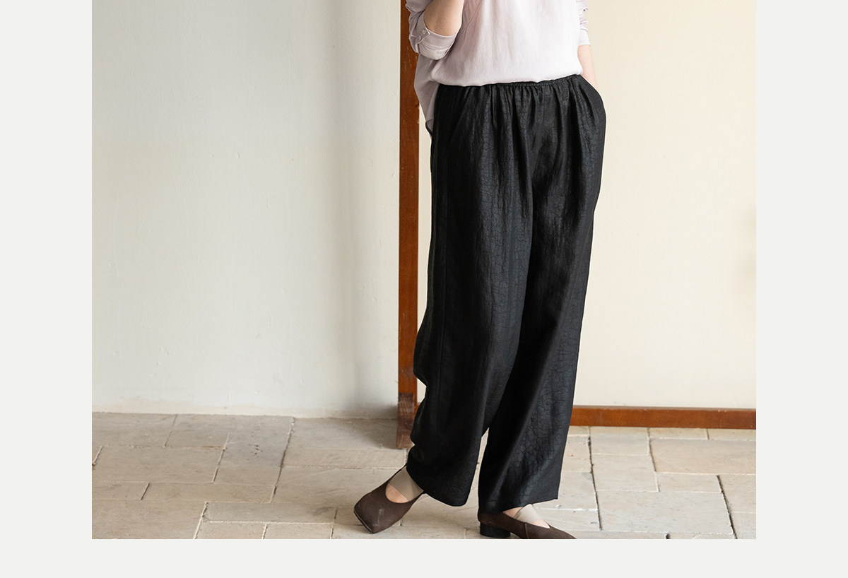 牧衣游原创 重磅龟裂纹香云纱休闲长裤垂感显瘦禅意百搭裤子 初山