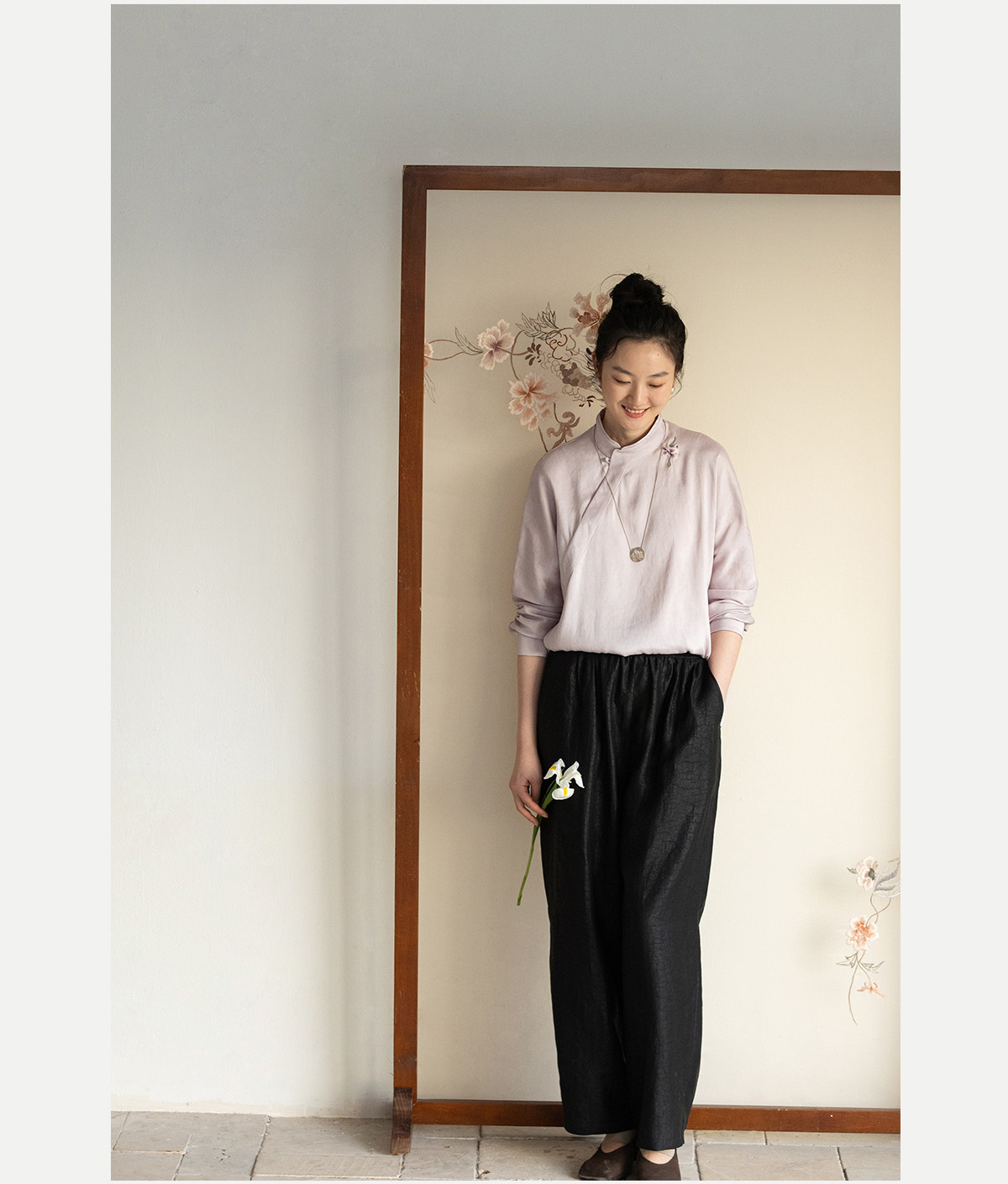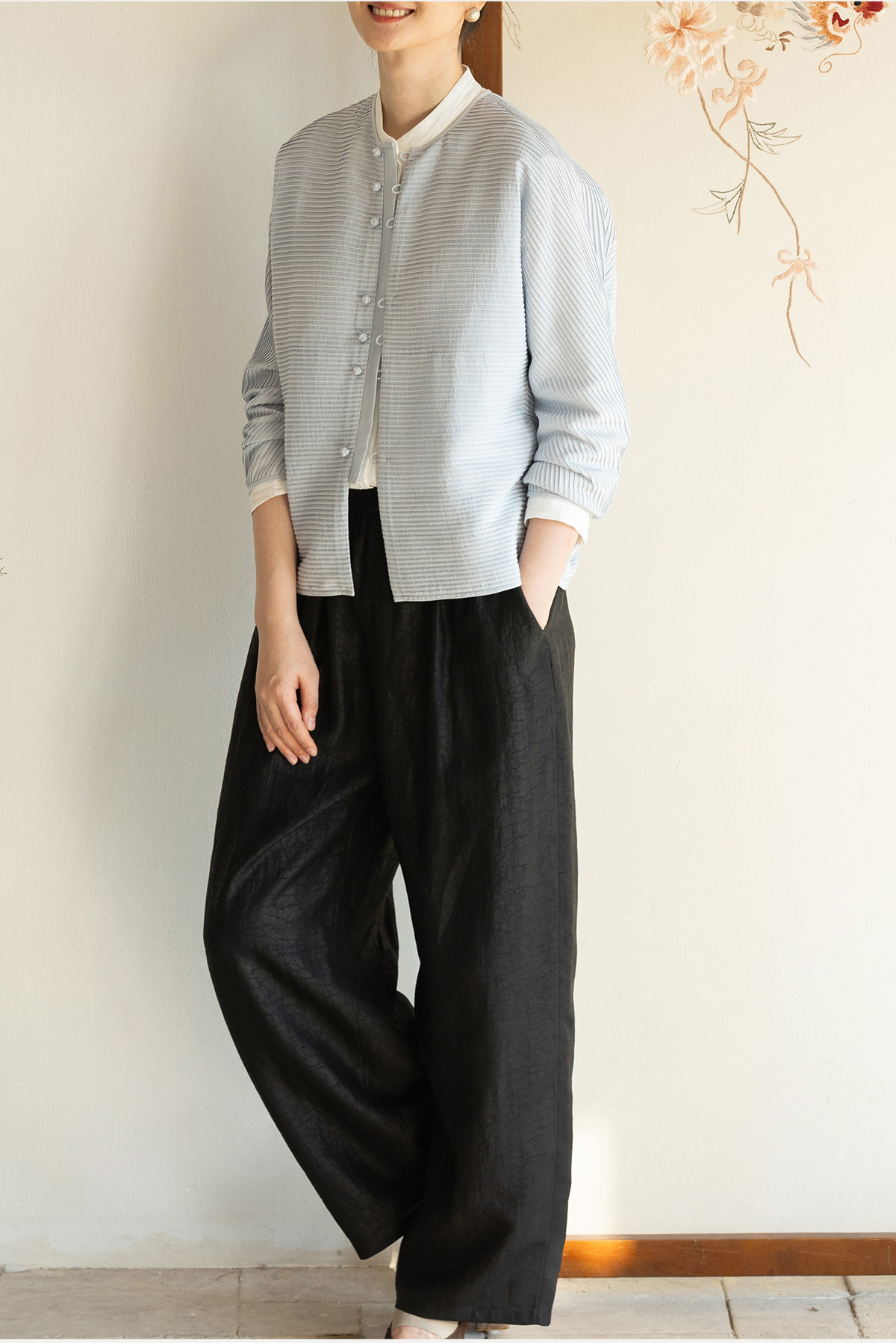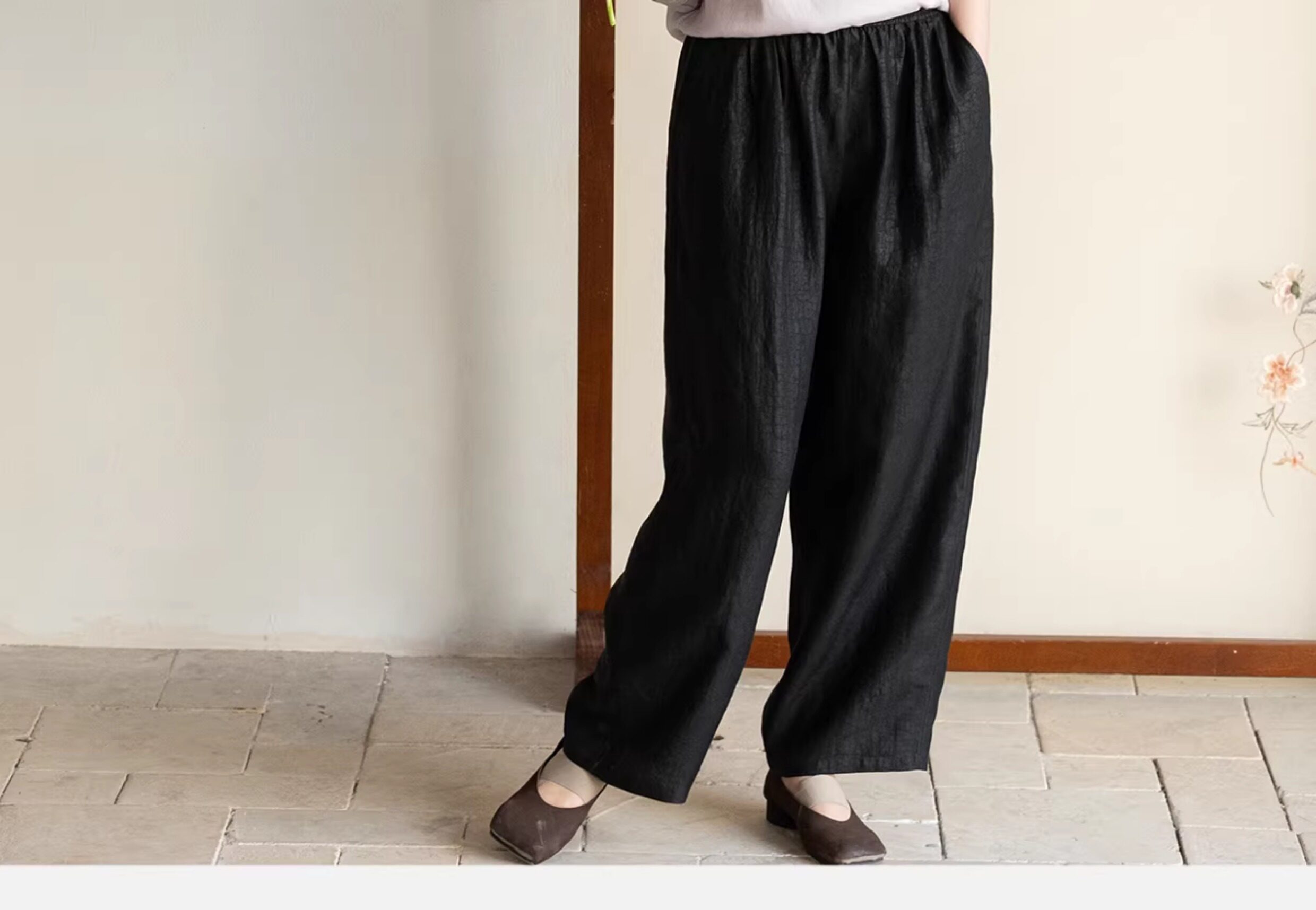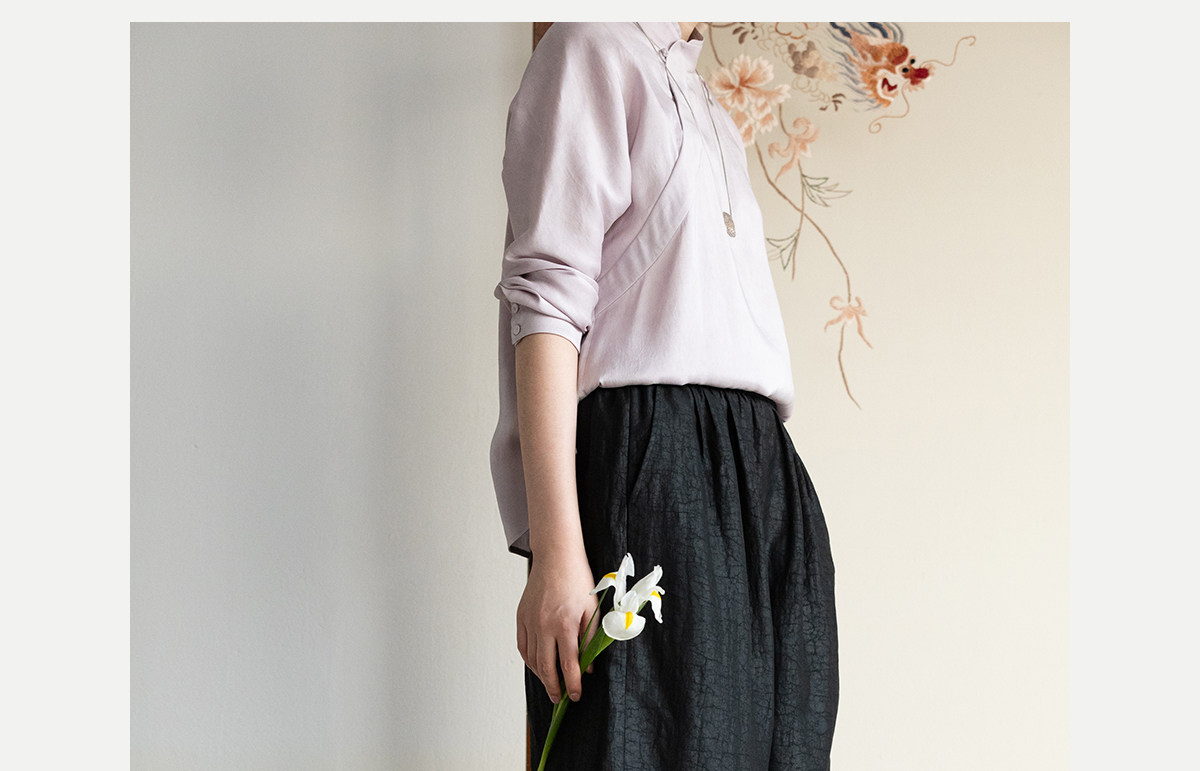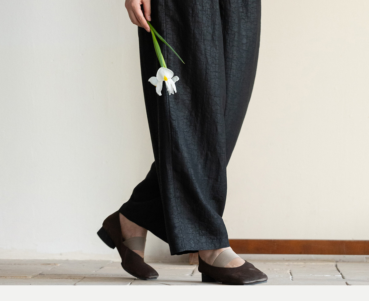 牧衣游原创 重磅龟裂纹香云纱休闲长裤垂感显瘦禅意百搭裤子 初山