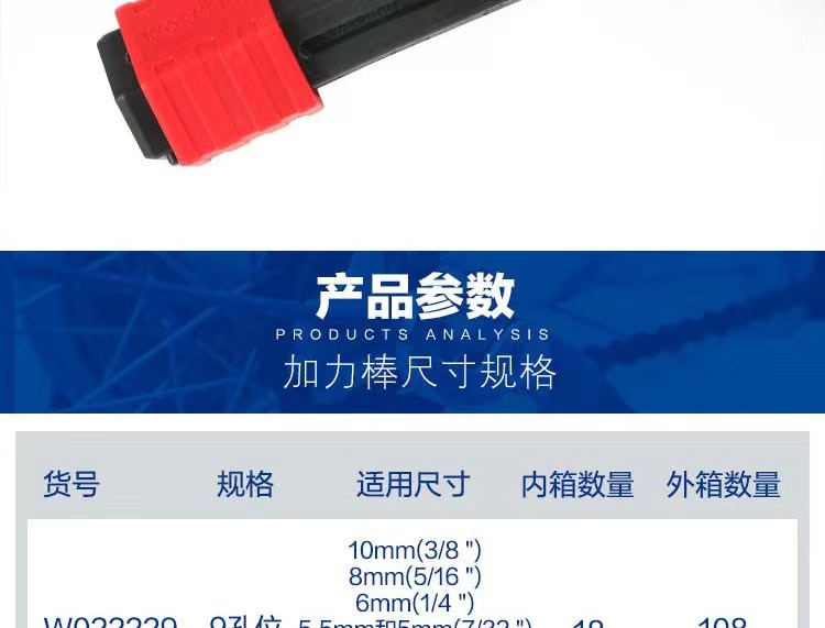 万克宝内六角加力棒9孔位(公英制通用)