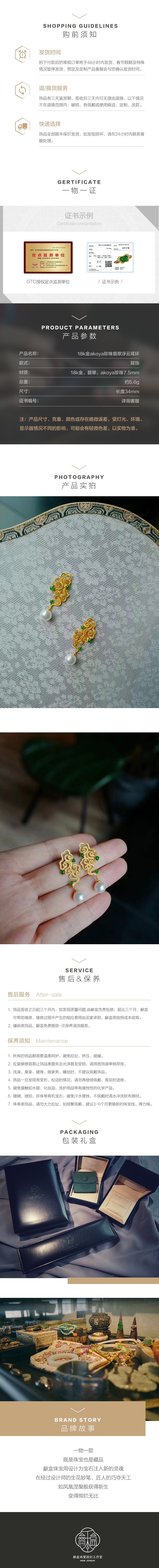 龢盒原创 18k金akoya珍珠翡翠浮云耳环