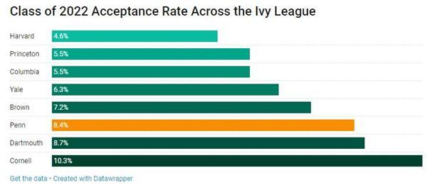 《经济学人》有文章报道过,每年美国每家顶尖院校都大约有几万人申请,但被常春藤盟校录取的学生人数不到200人,总体录取率在 0.5% 左右。