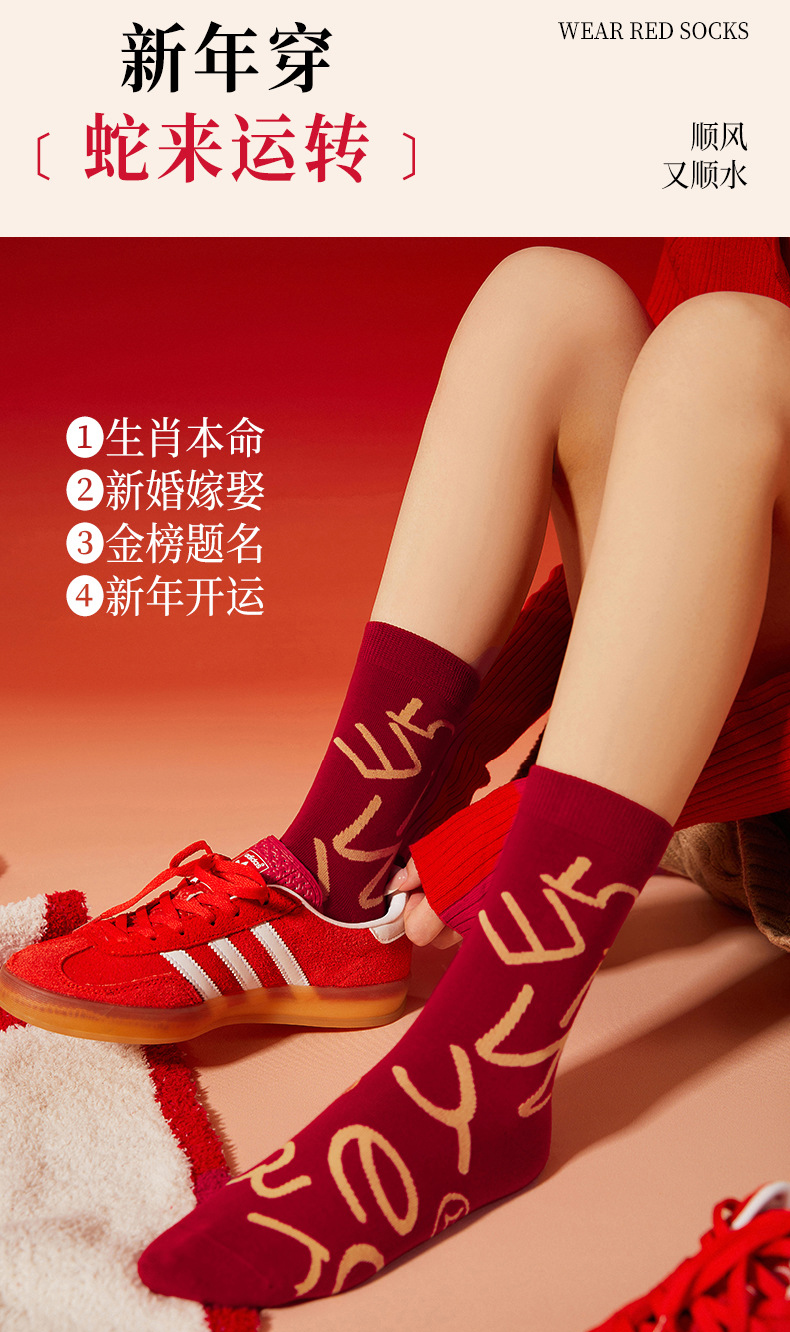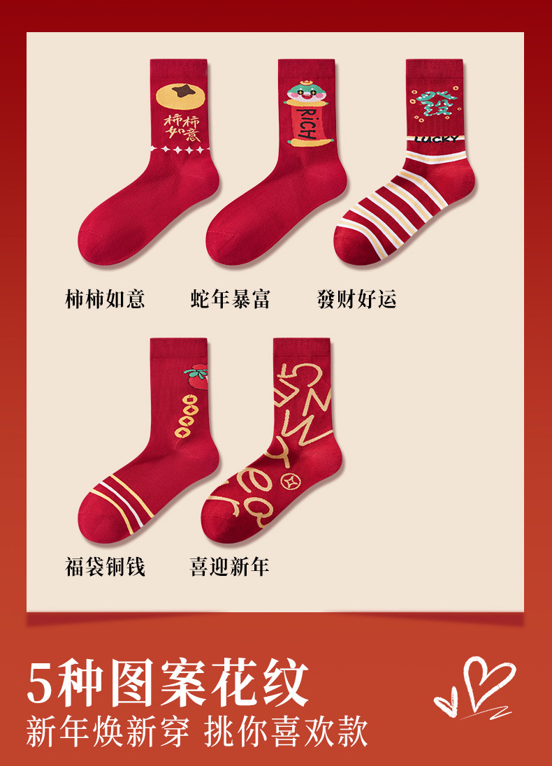 【蛇年限定盒袜】五双装中筒男女袜,金蛇纳福,新疆精梳棉舒适透气高密编织,5级抗起球,7A级防臭抑菌