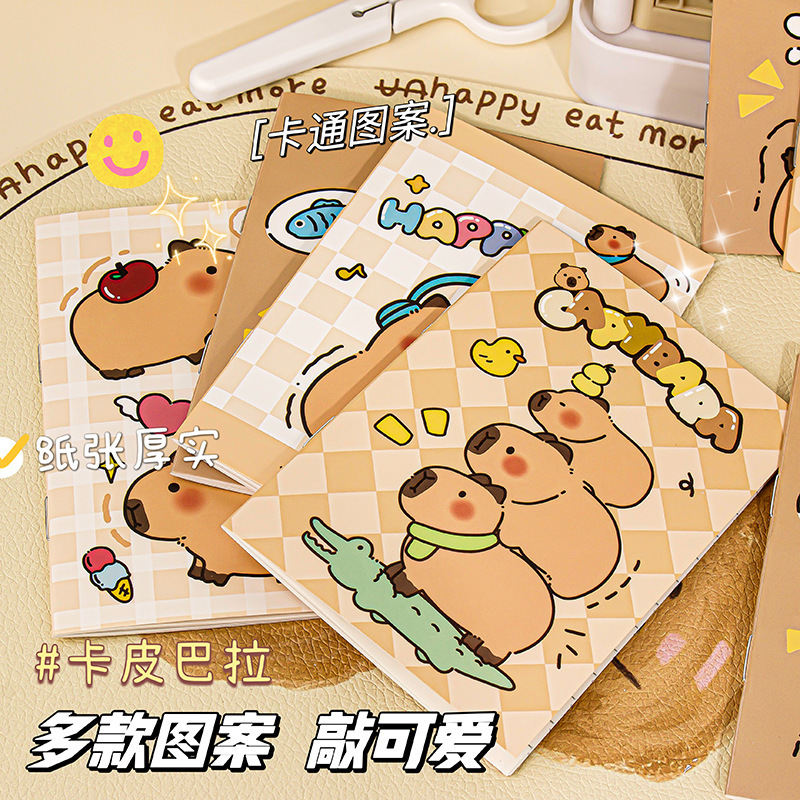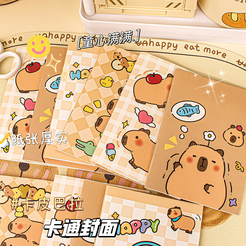 「19.9到手40本!随身小本」可爱迷你卡皮巴拉小本子 卡通水豚鼠横线笔记本学生用口袋本骑马钉本