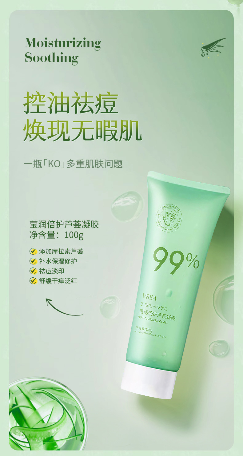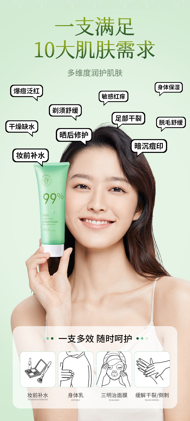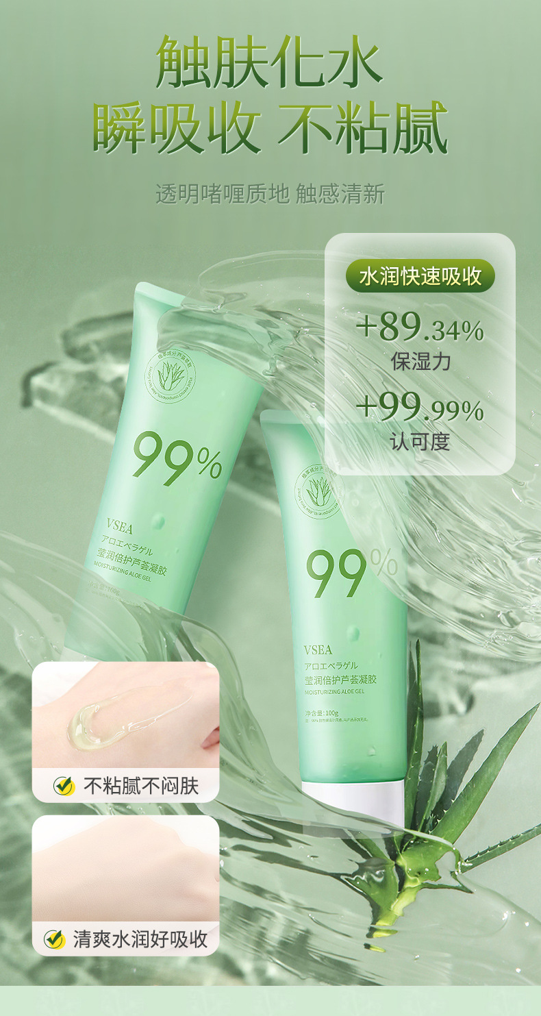 「拍1发3!9.9到手3支」VESA水润芦荟凝胶 补水保湿晒后修护面霜舒缓芦荟胶美容护肤品
