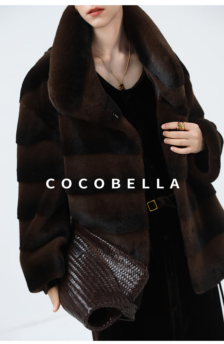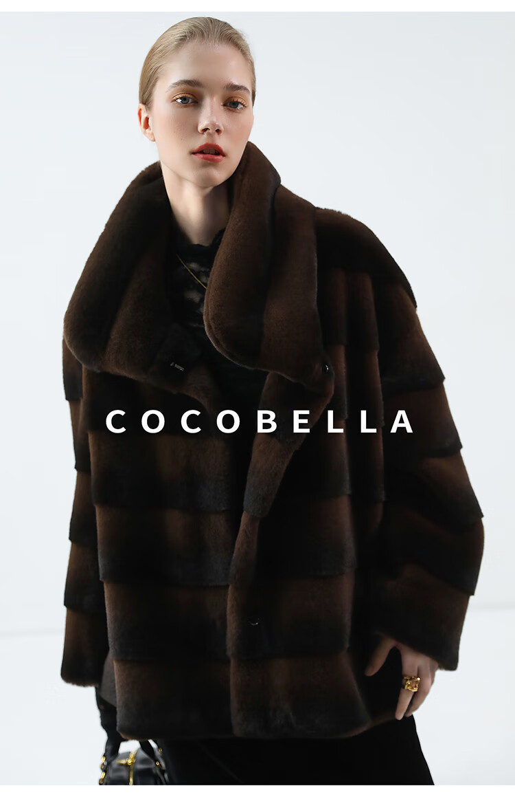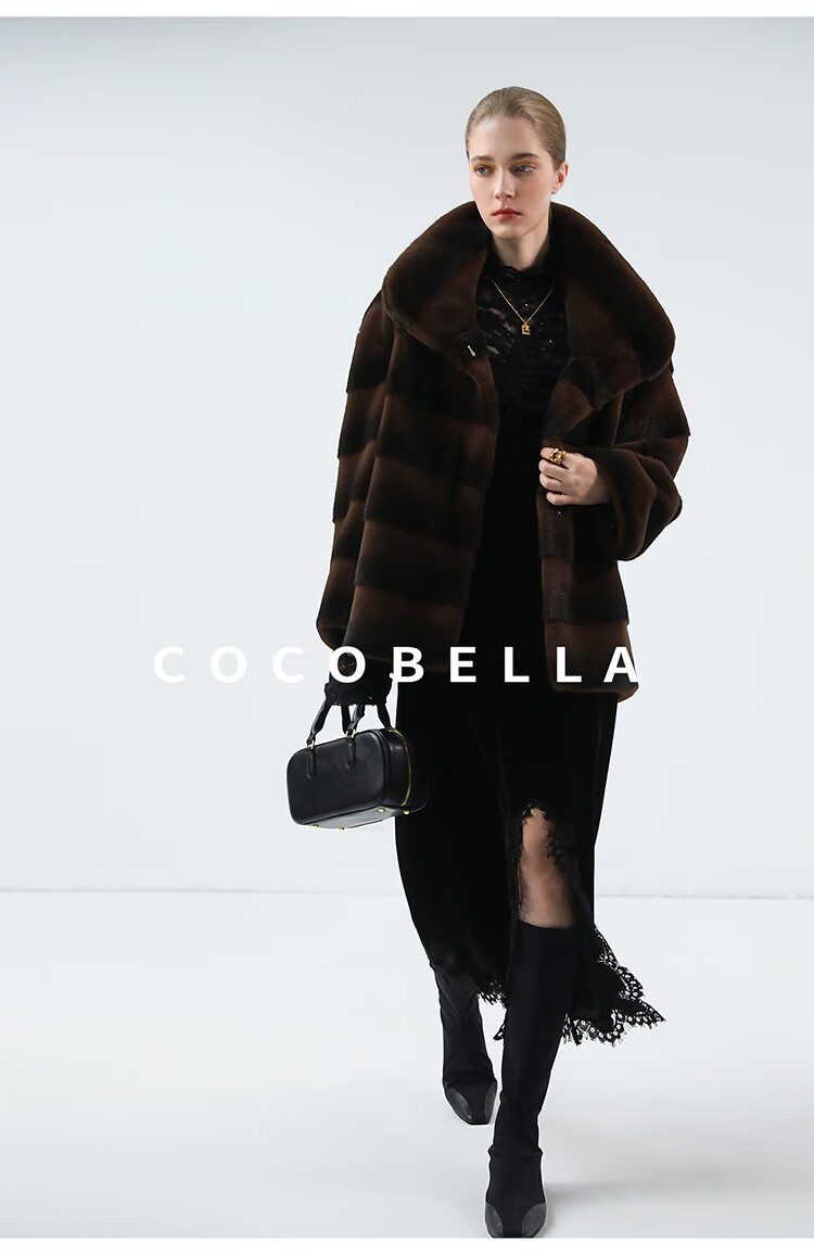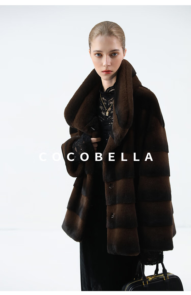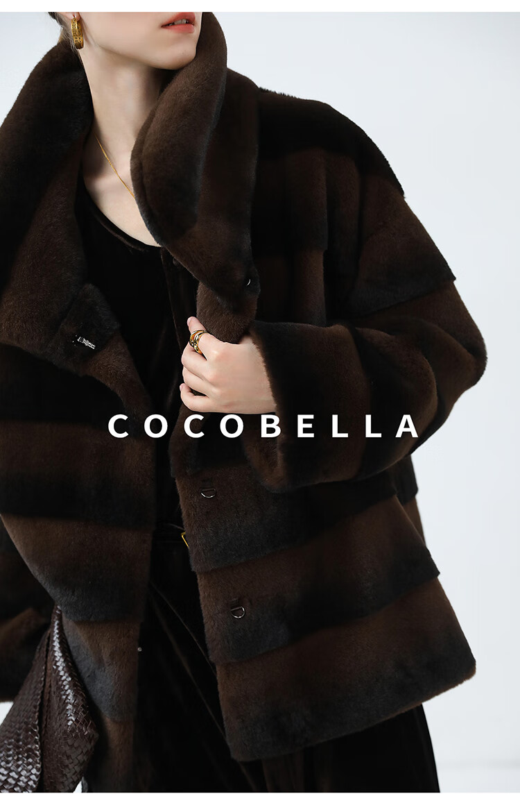 COCOBELLA仿天鹅绒丰盈绒感环保皮草大衣横排工艺外套FU7009