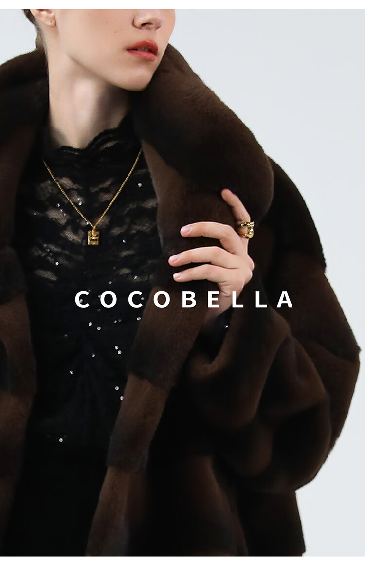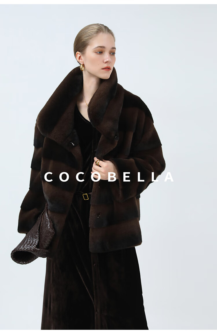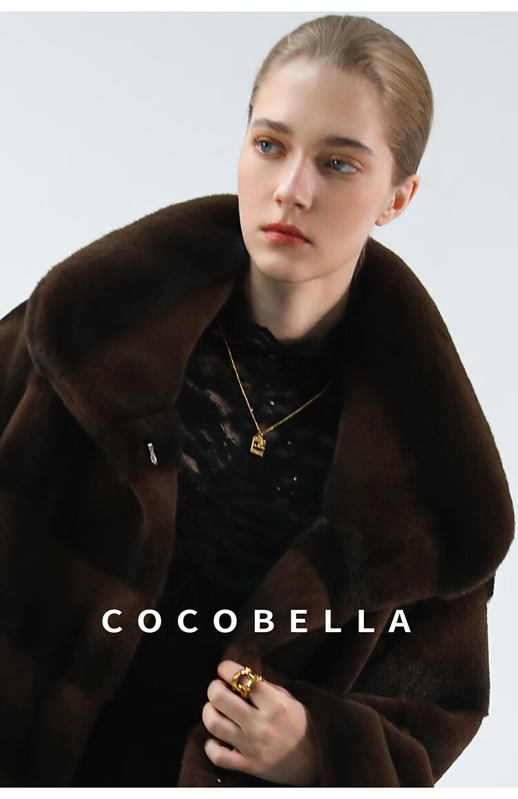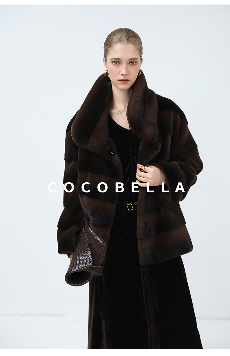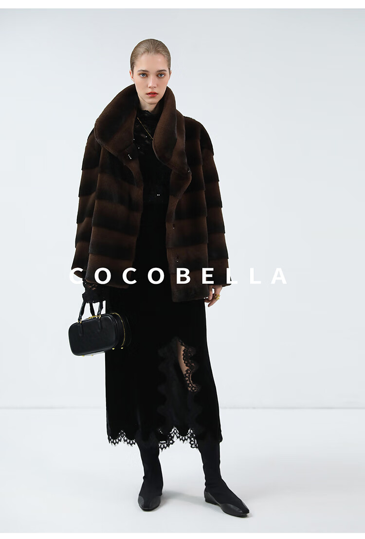 COCOBELLA仿天鹅绒丰盈绒感环保皮草大衣横排工艺外套FU7009