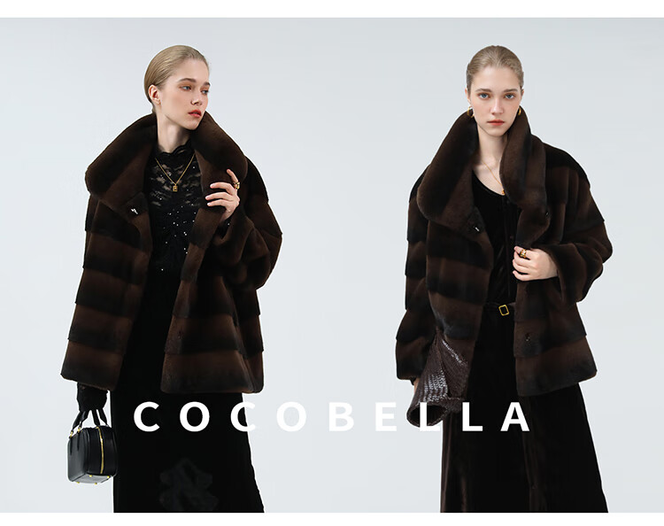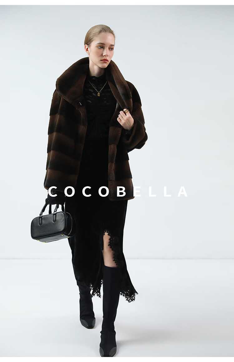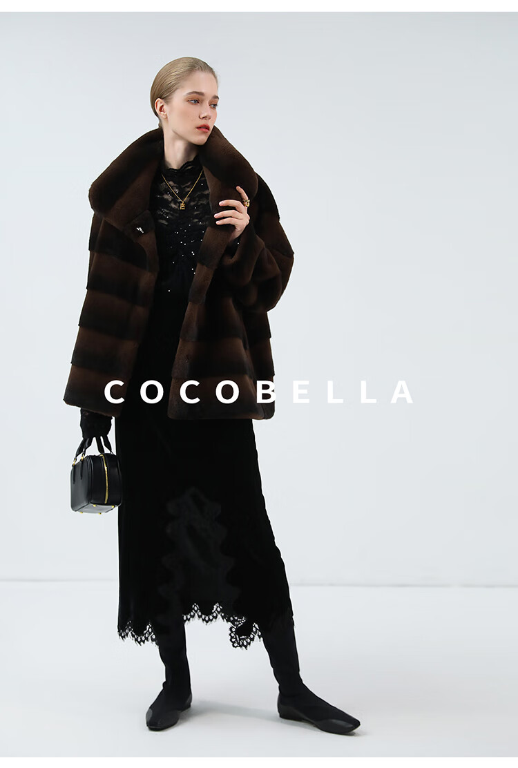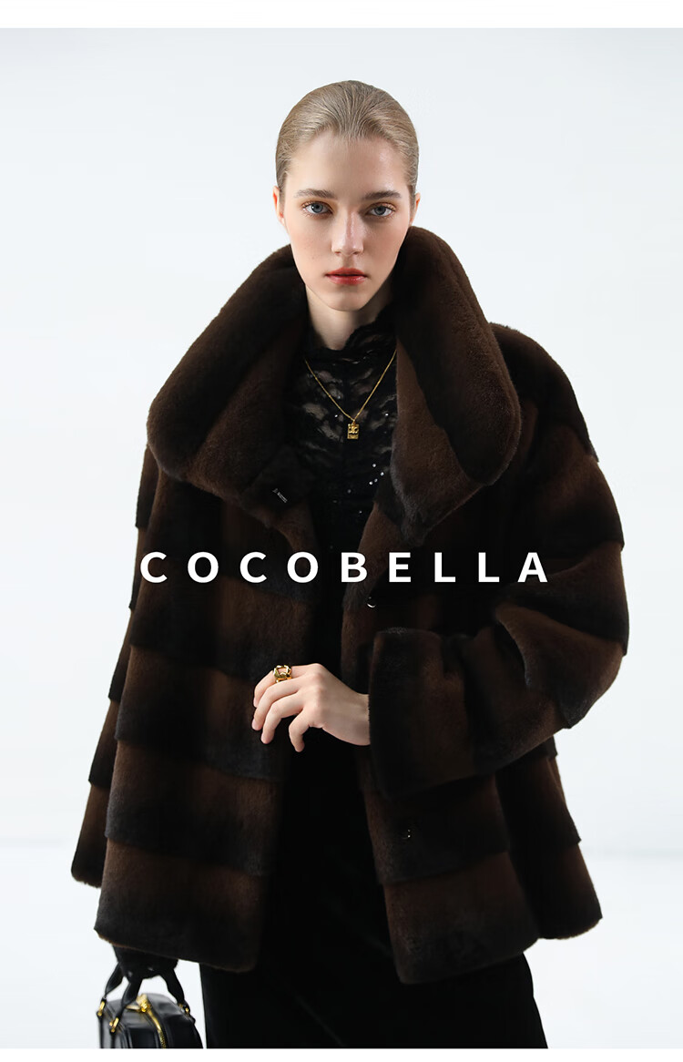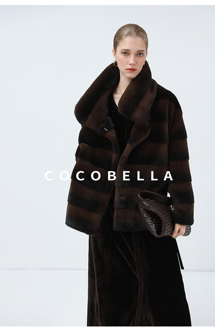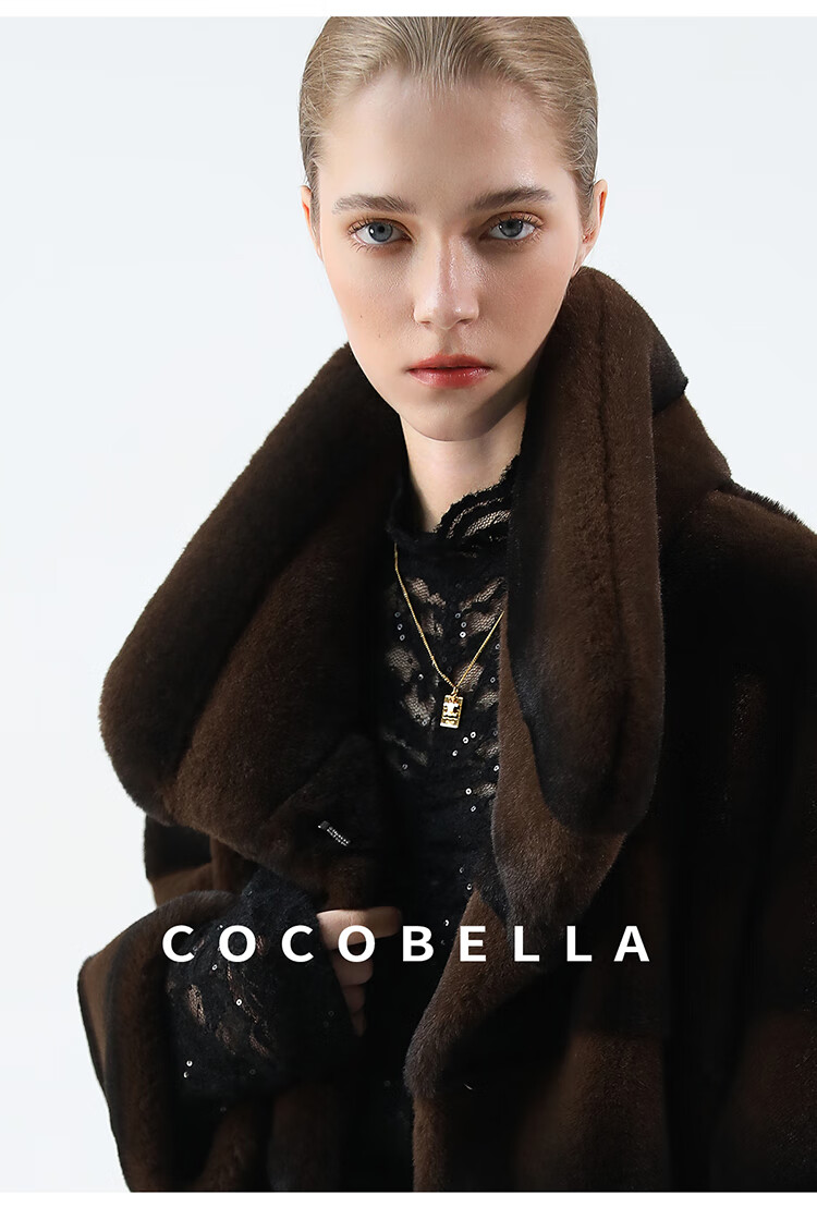 COCOBELLA仿天鹅绒丰盈绒感环保皮草大衣横排工艺外套FU7009