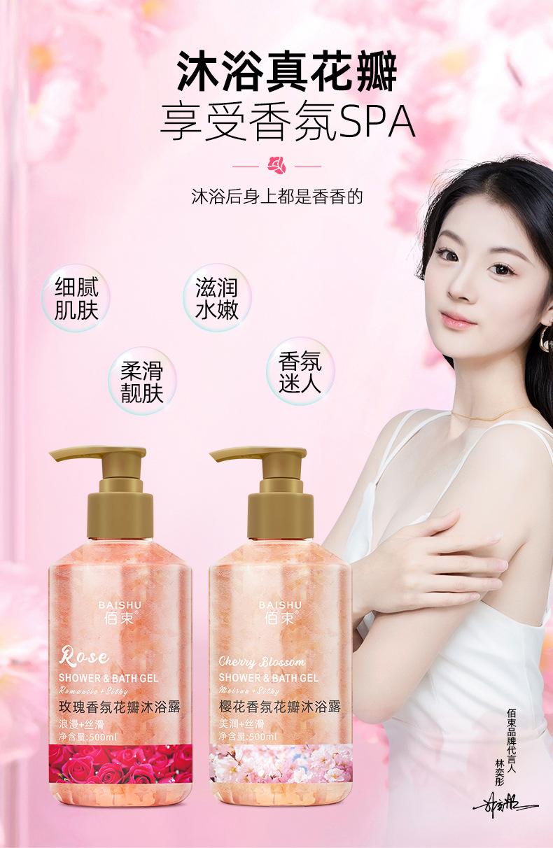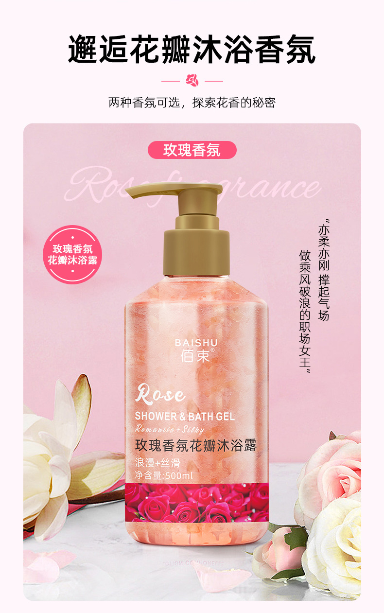 「买1送1!花瓣香氛」佰束花瓣樱花沐浴露 保湿舒缓肌肤留香玫瑰花瓣控油清洁浴