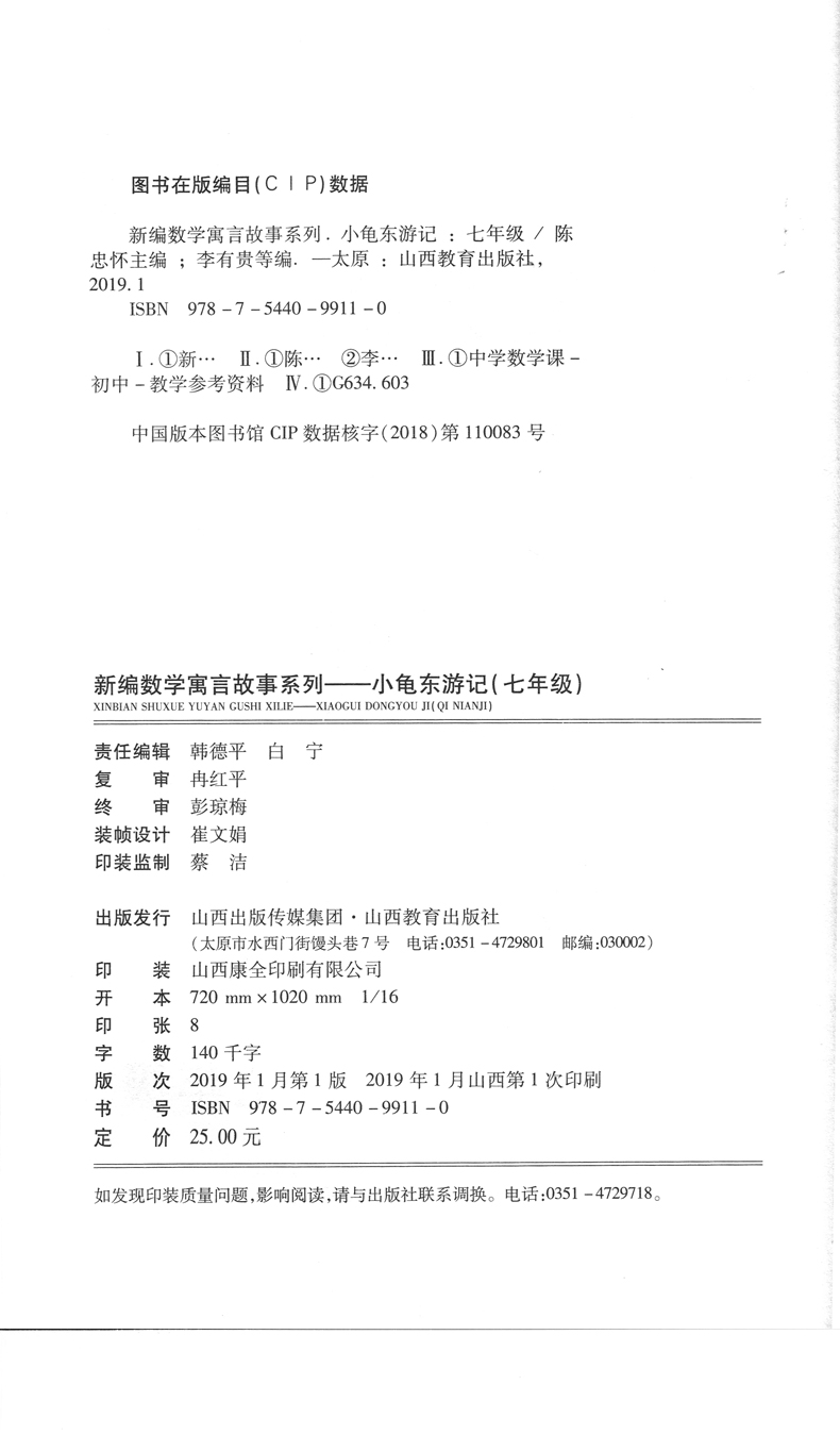 正版 包邮 小龟东游记 新编数学寓言故事系列 七年级 初中数学 教学参考