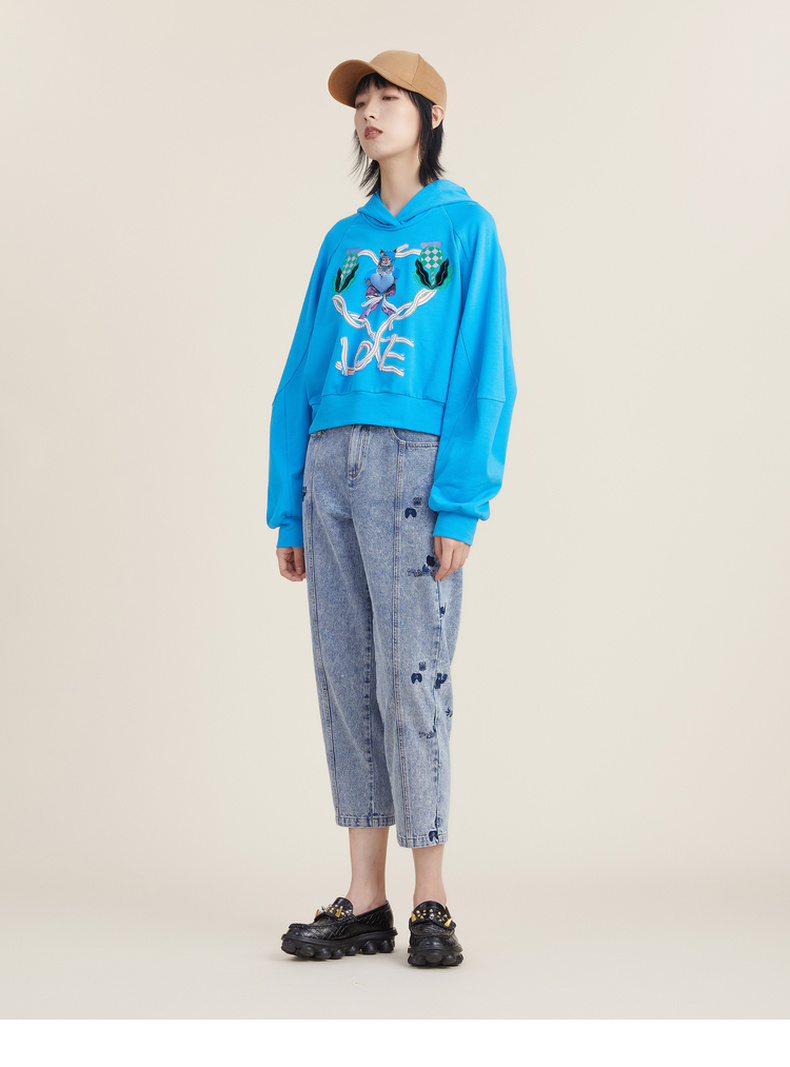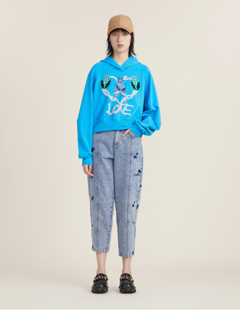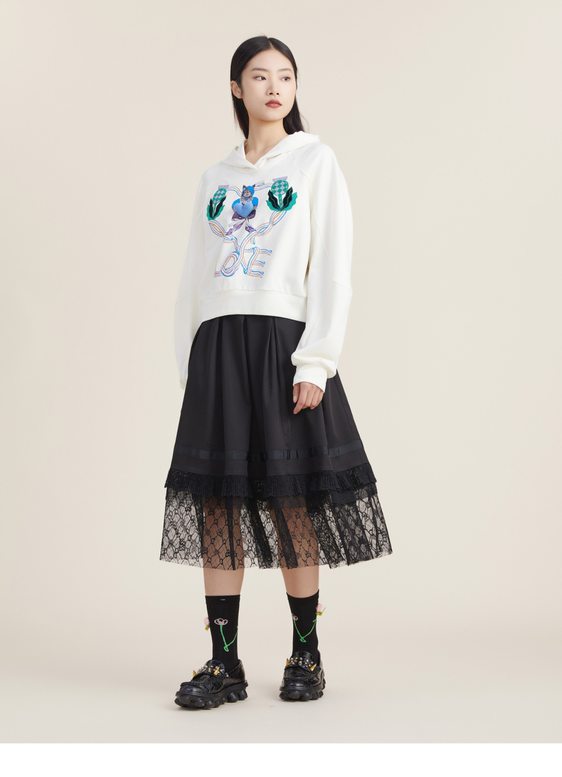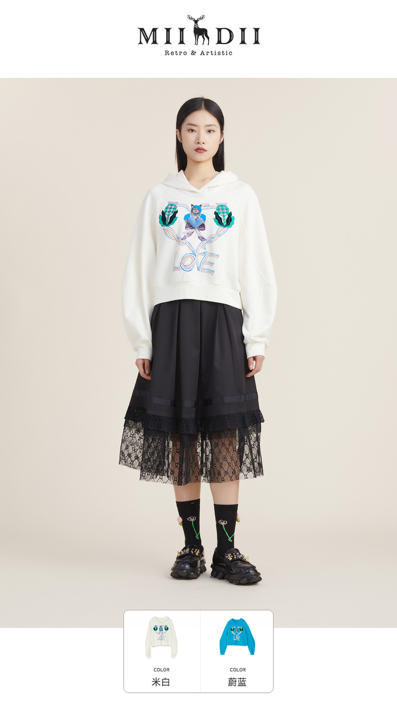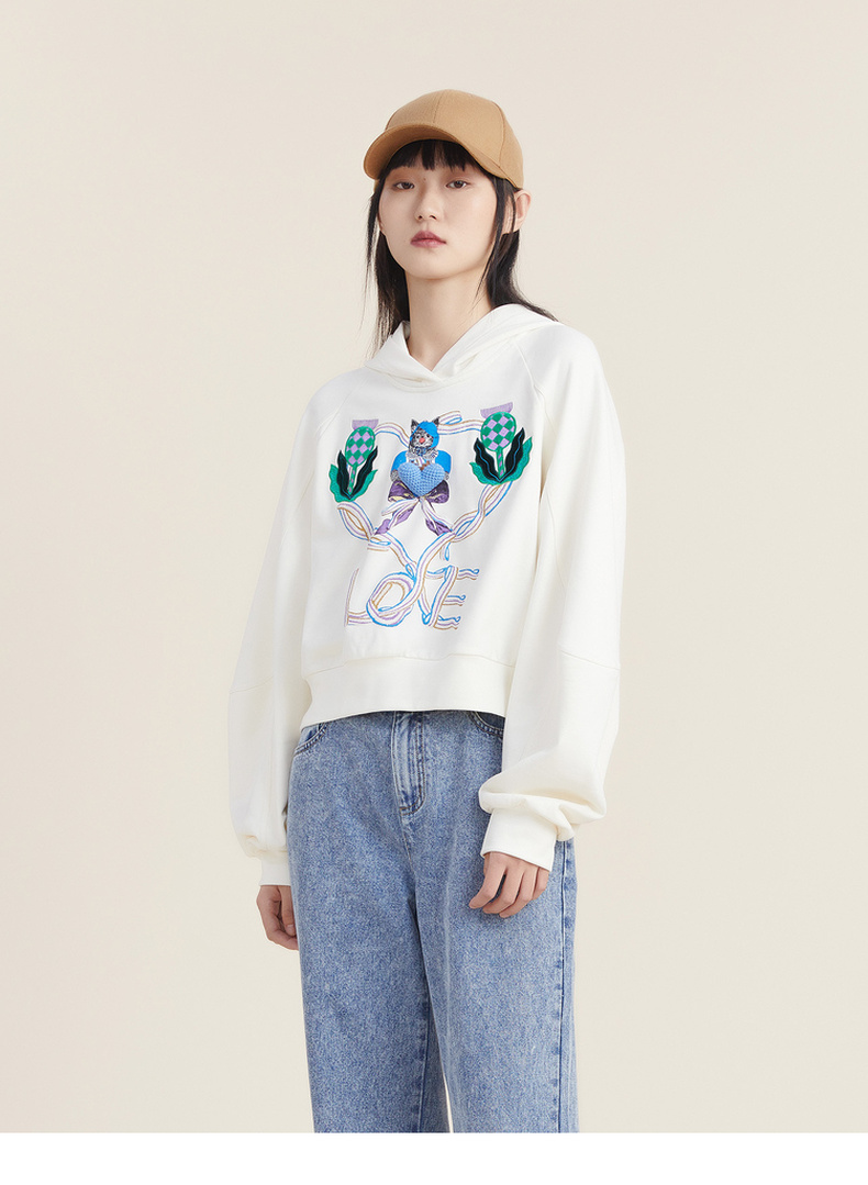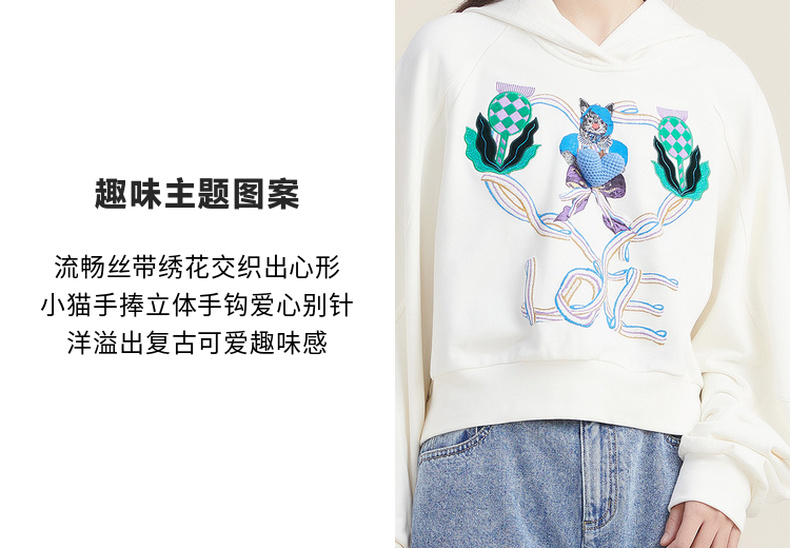 谜底连帽套头卫衣女2022秋新款立体爱心小猫咪绣花休闲223MV1111