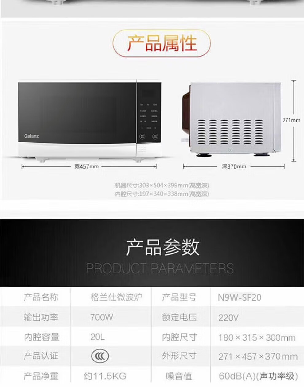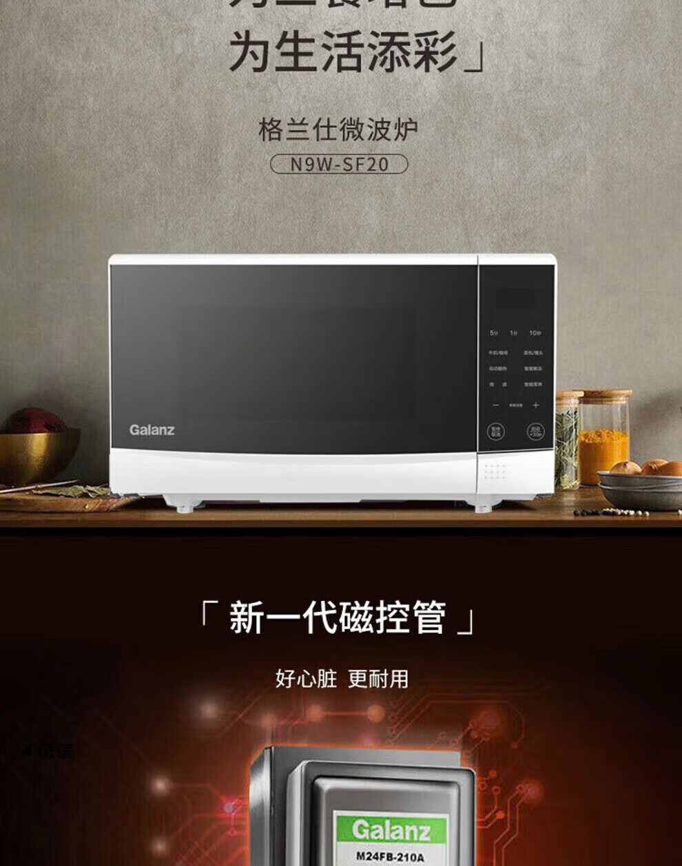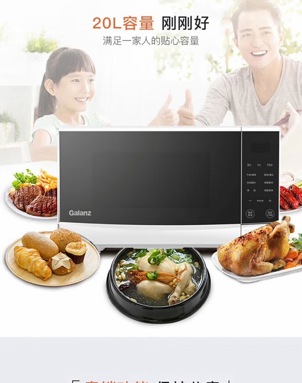 【小家电】格兰仕Galanz家用微波炉700W智能按键操控20L大容量精准控温微晶加热面板 HF