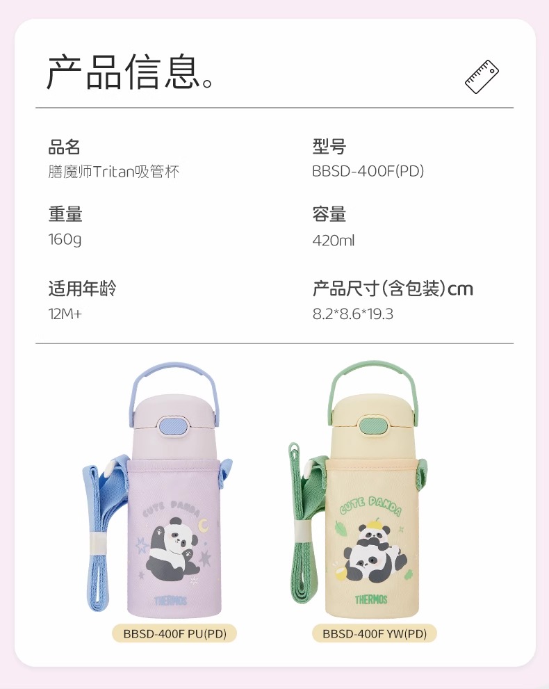 【清仓特惠7折】膳魔师儿童杯宝宝水杯幼儿园便携水杯熊猫乐园