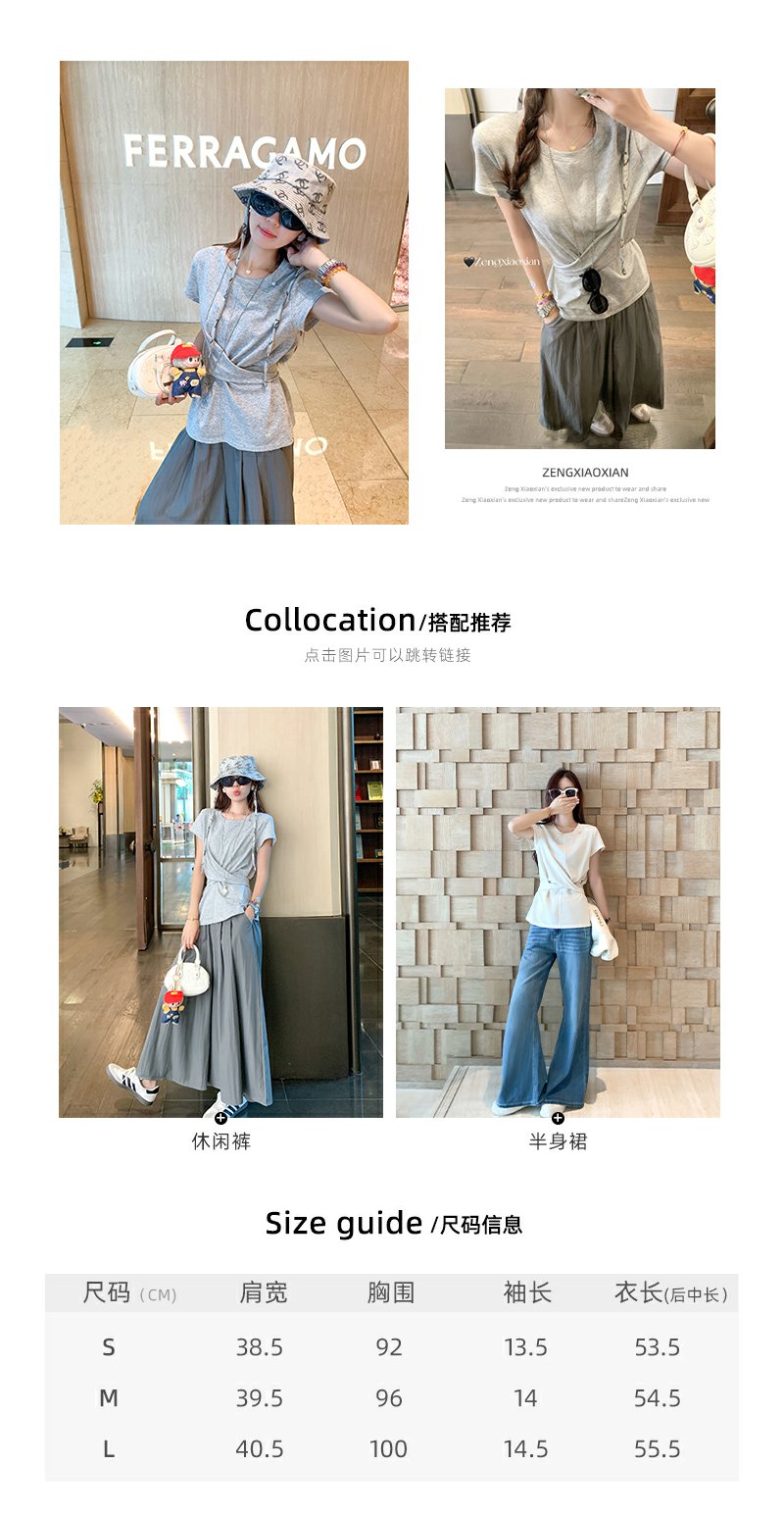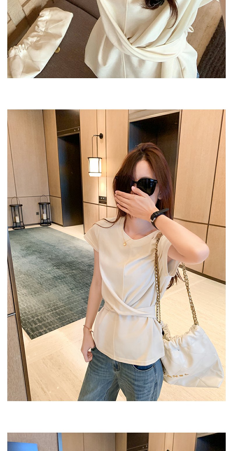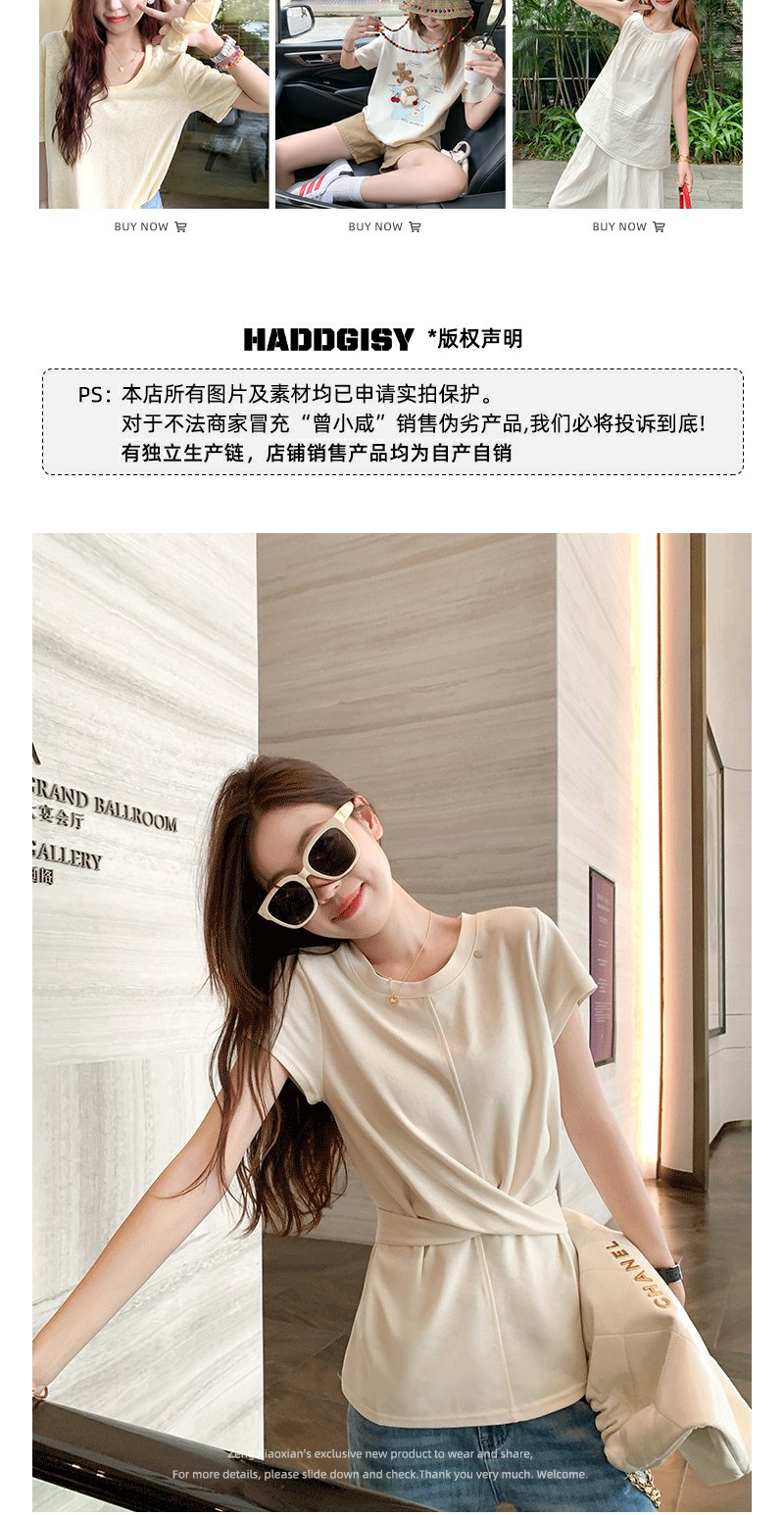 <曾小咸推荐>现货秒杀!腰间系带正肩短袖T恤 日常129.99 立减60 秒杀69.99!