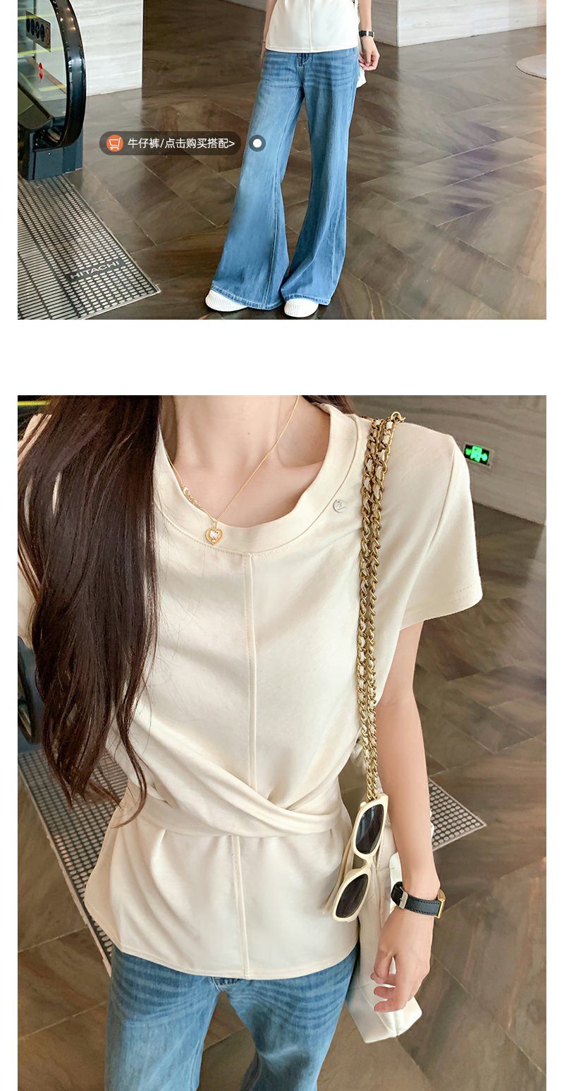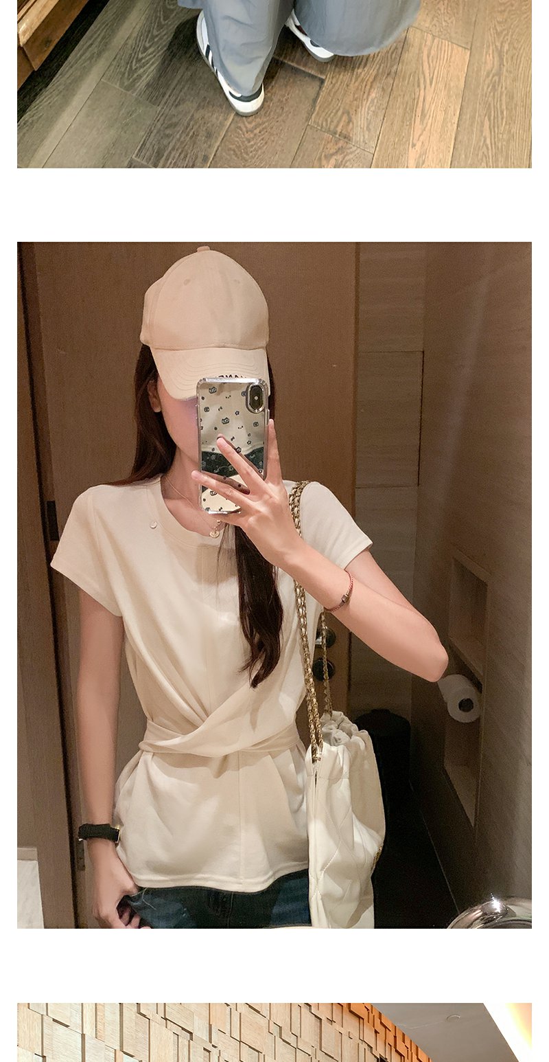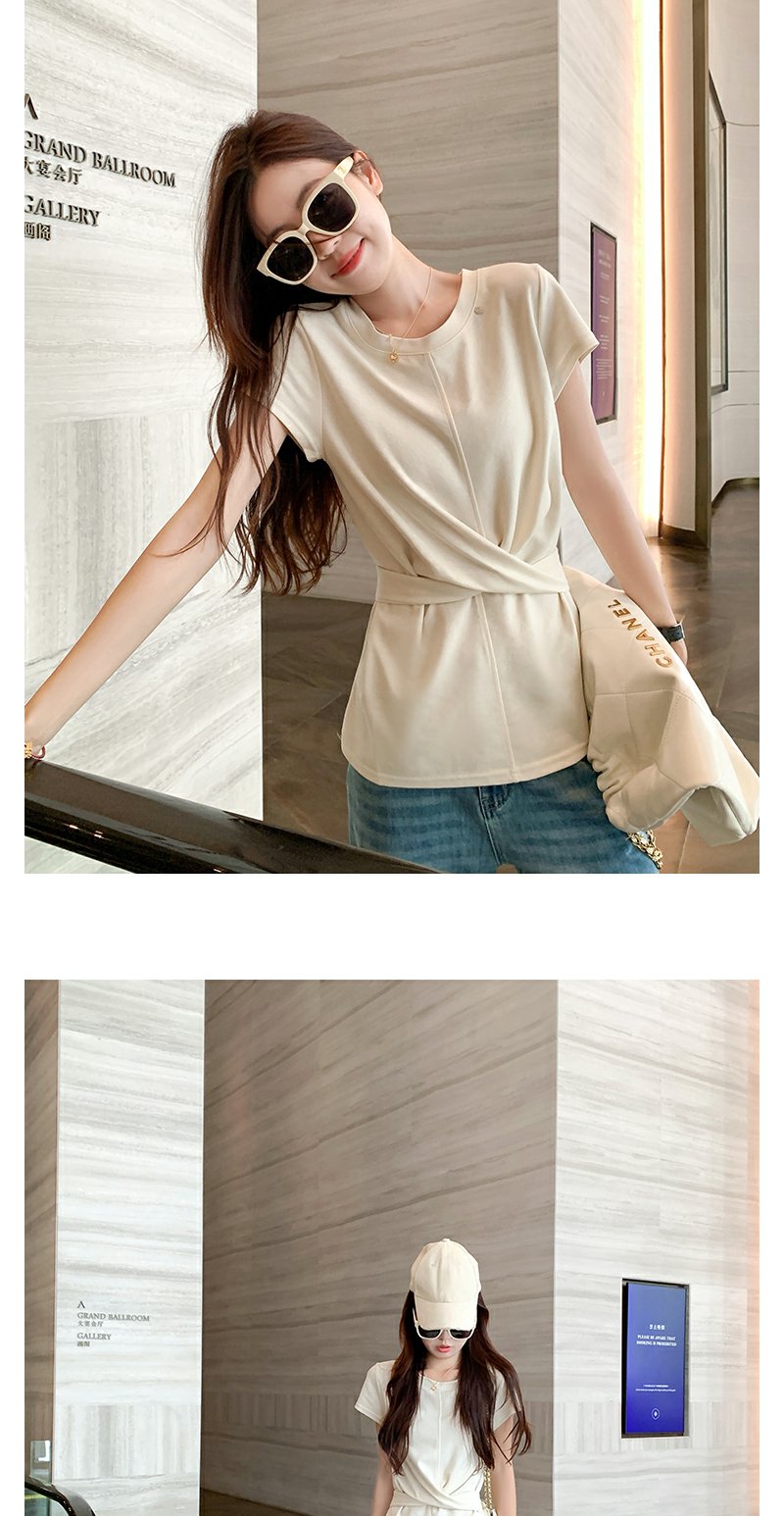 <曾小咸推荐>现货秒杀!腰间系带正肩短袖T恤 日常129.99 立减60 秒杀69.99!