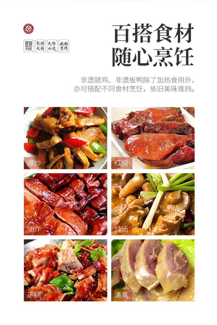 ③非遗腊鸡为腌腊制品真空包装漏气胀袋属于正常现象,不影响食用。