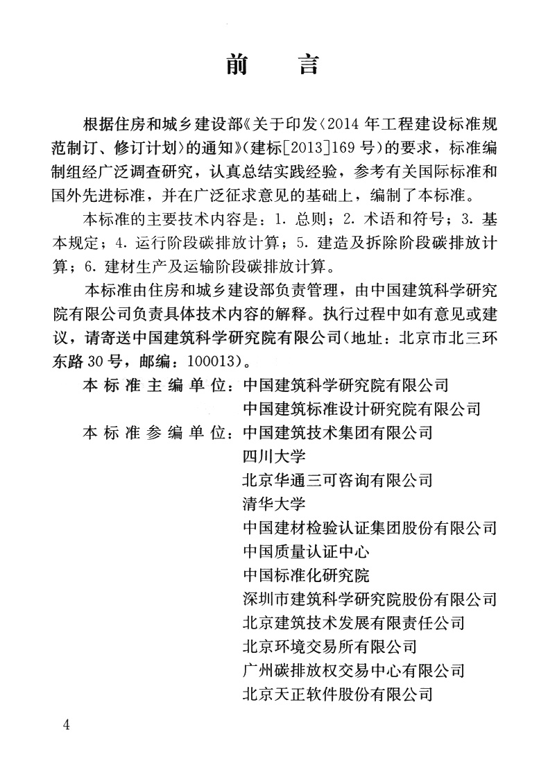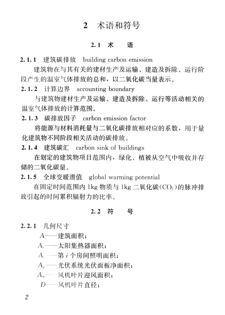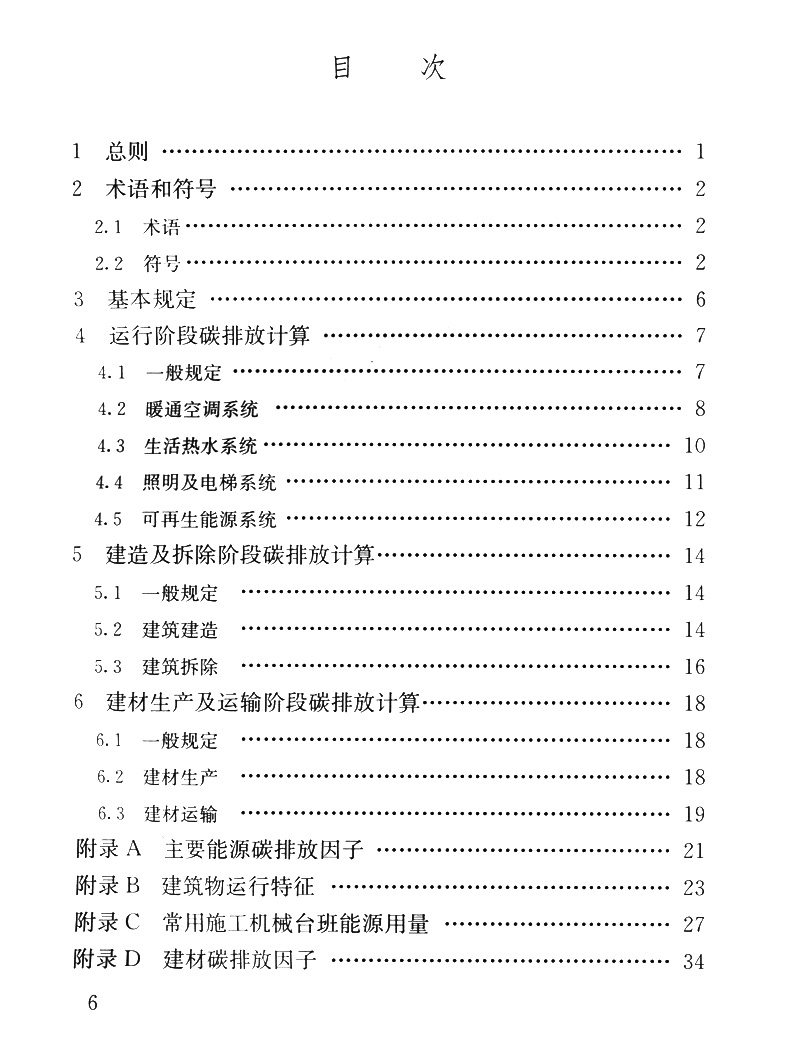本标准共分6章,主要技术内容是:1.总则;2.术语和符号;3.基本规定;4.运行阶段碳排放计算;5.建造及拆除阶段碳排放计算;6.建材生产及运输阶段碳排放计算。由中华人民共和国住房和城乡建设部发布,编号为GB/T ×××××—××××,自××××年××月××日起施行。