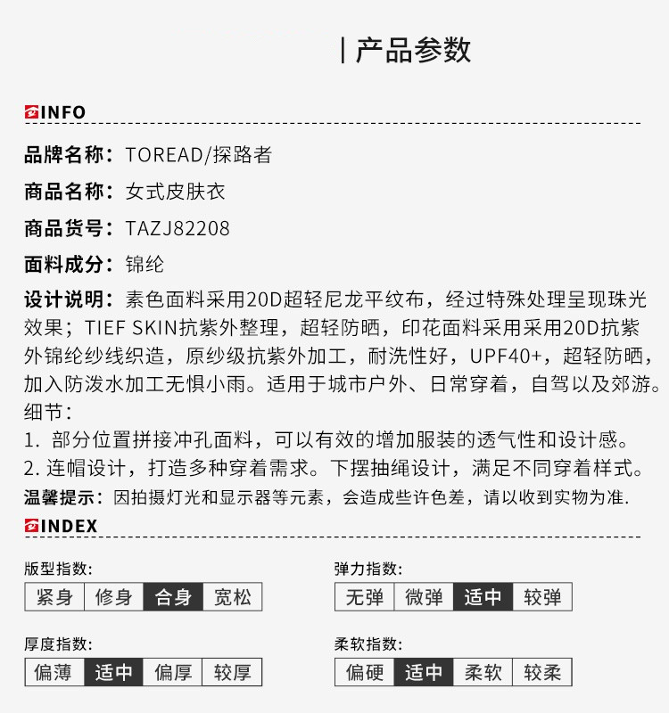 探路者女式皮肤衣TAZJ82208