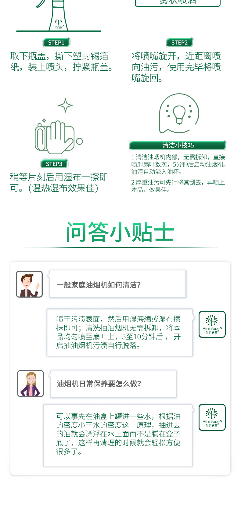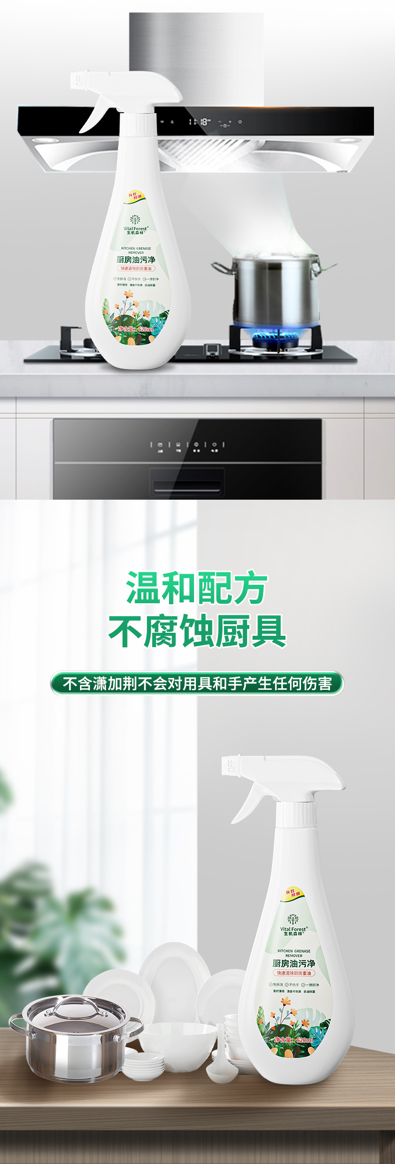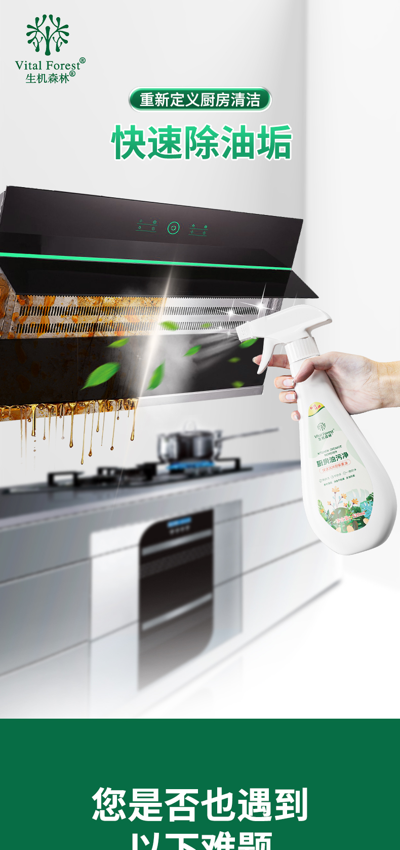(3瓶19.9)生机森林厨房油污净不伤手去污能力强一喷即亮(520ml)