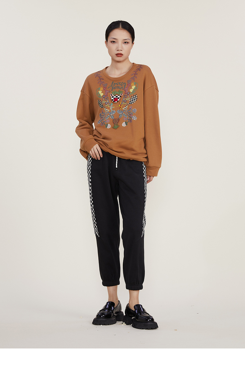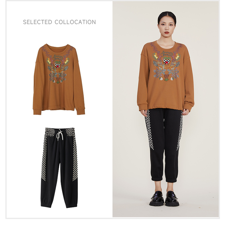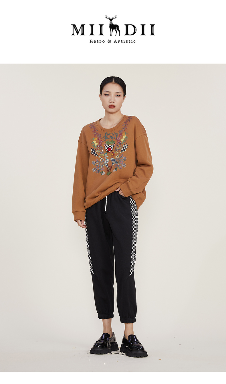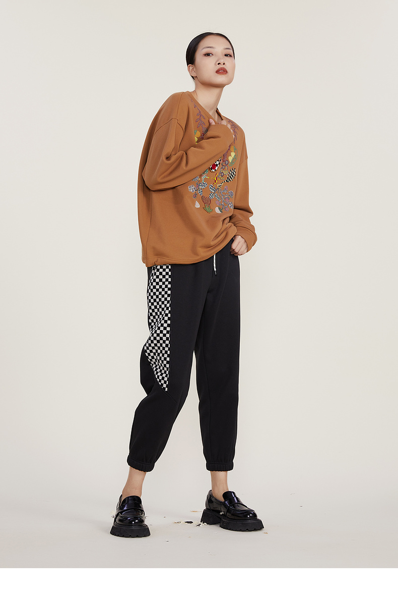 谜底2022冬新款时尚百搭加绒加厚卫裤女宽松萝卜九分裤224MK1613