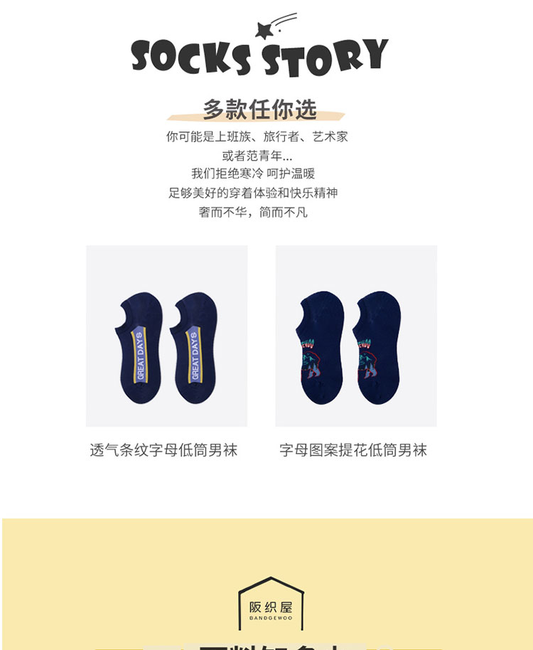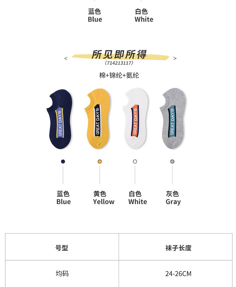 阪织屋男士短袜不易掉跟夏季新款低筒运动船袜ins潮7142131171000 / 7142131177000