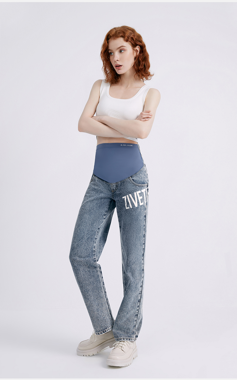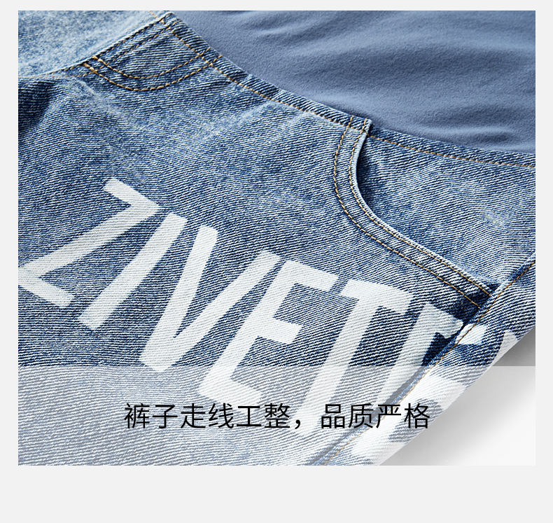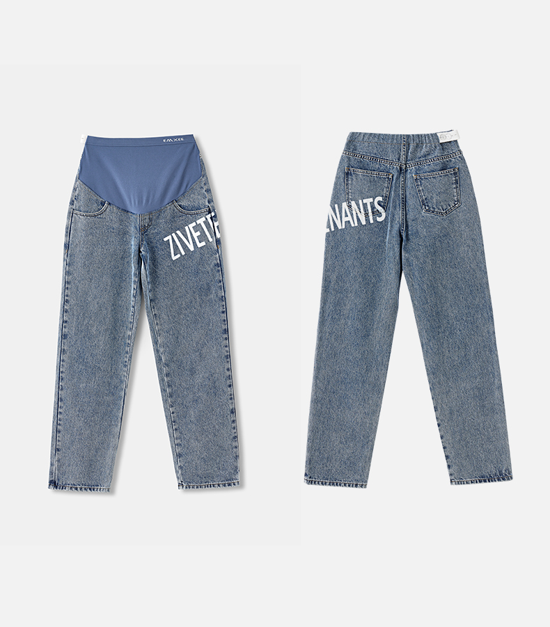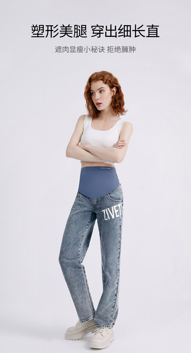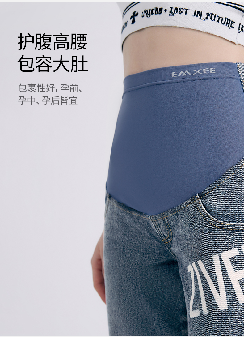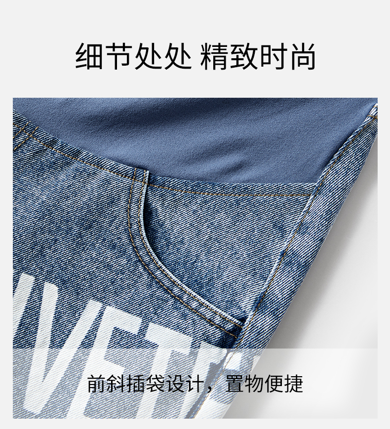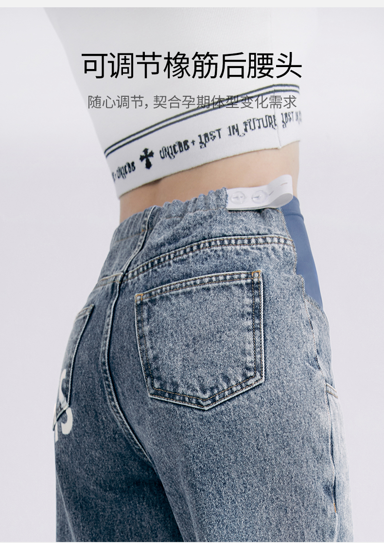 【孕妈服饰】嫚熙孕妇牛仔阔腿裤春秋外穿大码托腹孕期妈妈设计感印花牛仔长裤