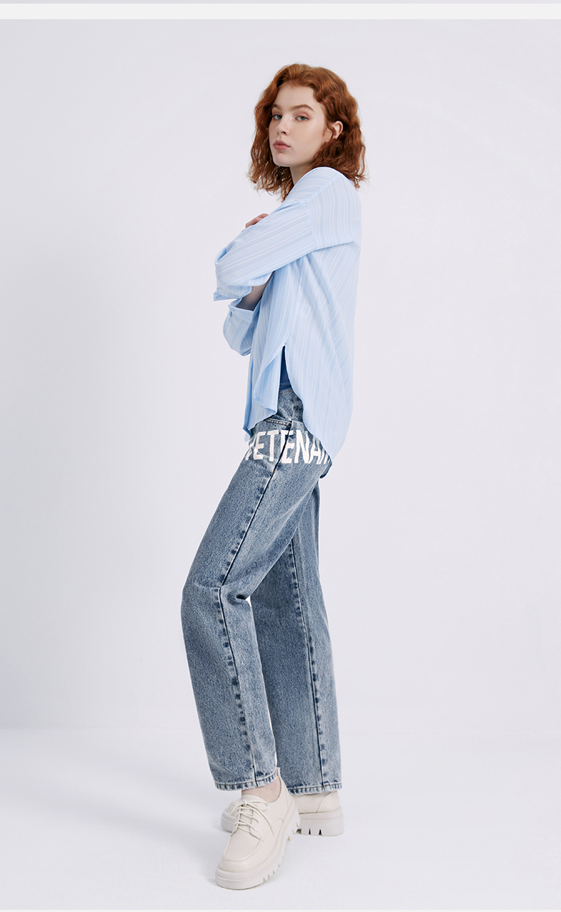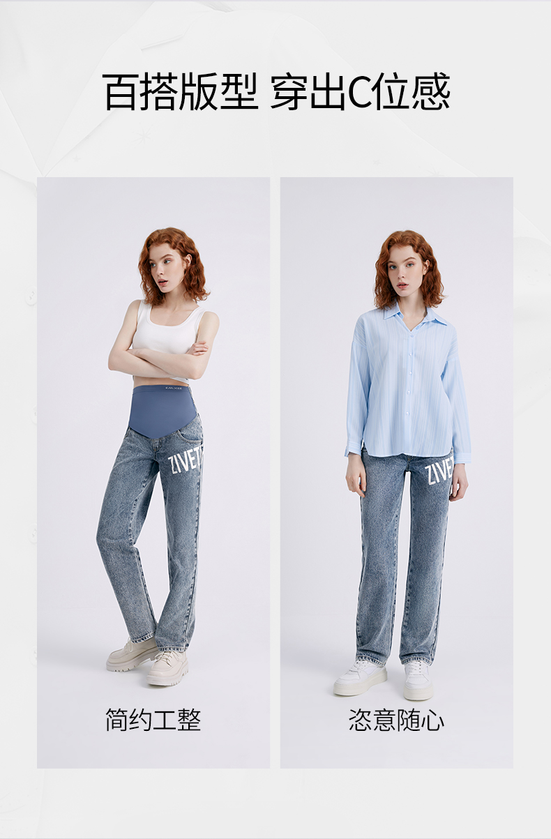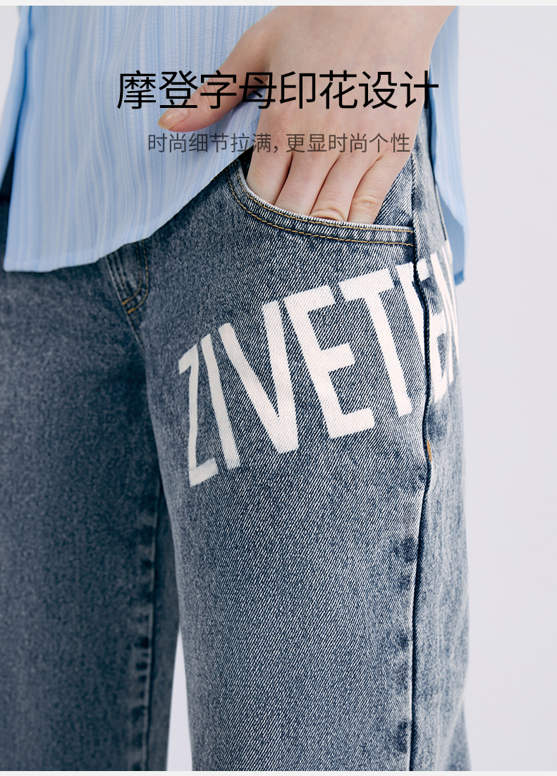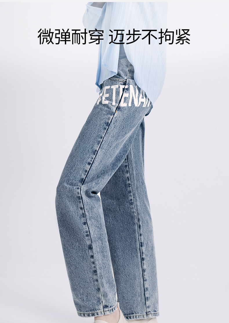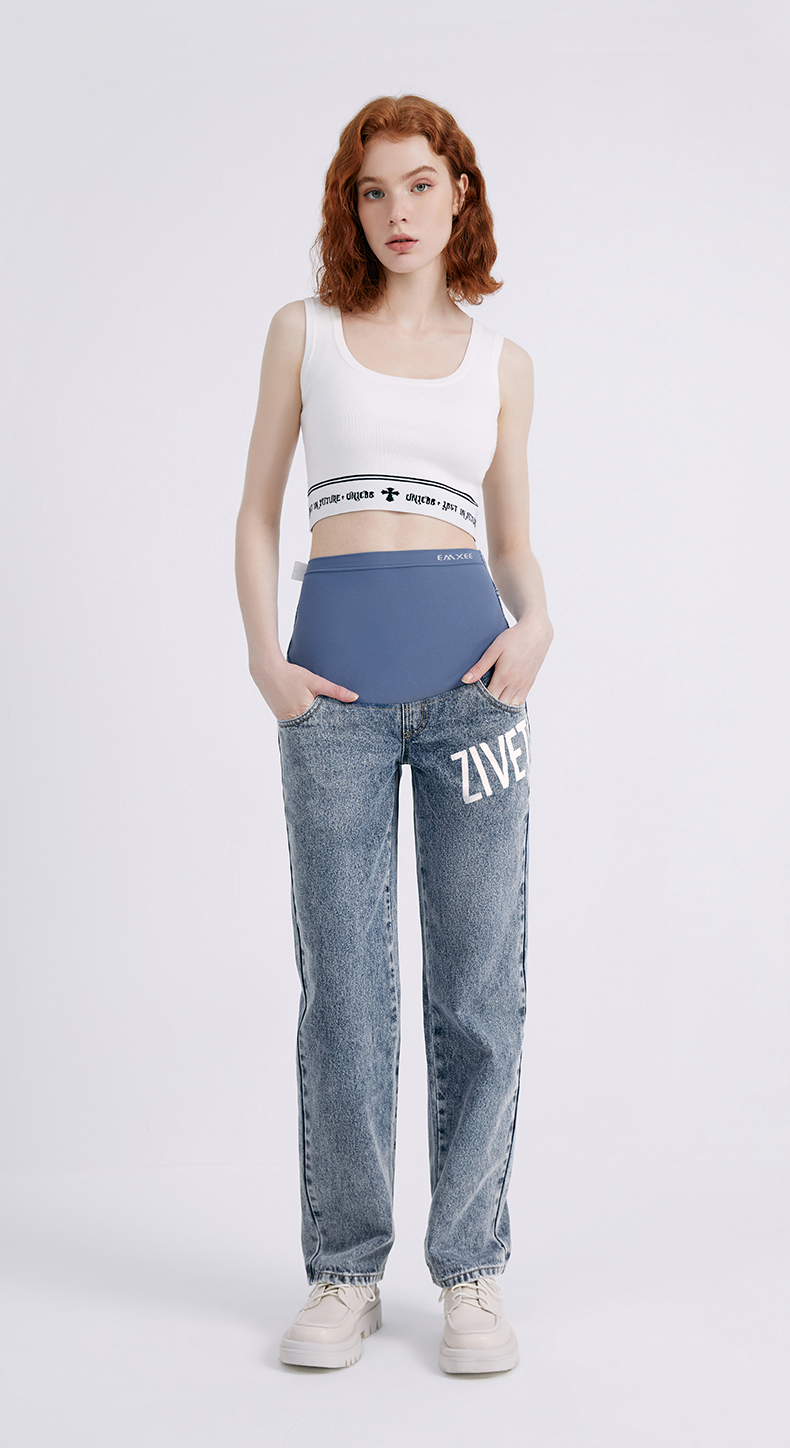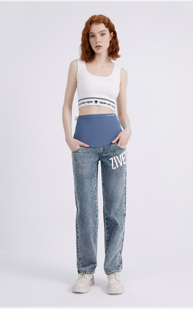 【孕妈服饰】嫚熙孕妇牛仔阔腿裤春秋外穿大码托腹孕期妈妈设计感印花牛仔长裤