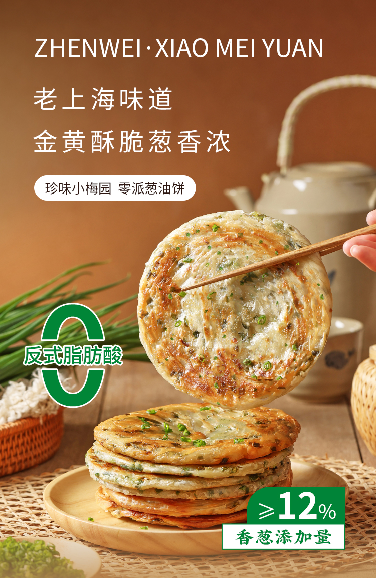 【0反式脂肪酸】珍味小梅园零派葱油饼500g*4袋香葱量高于12%