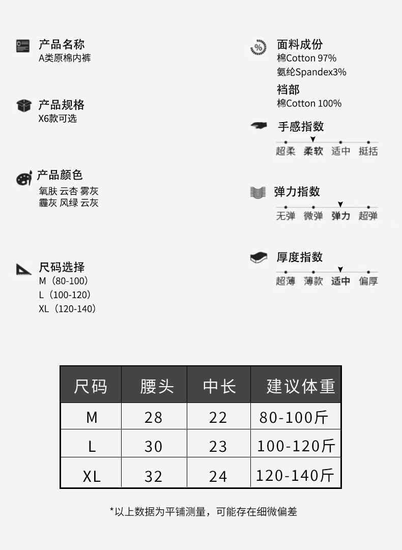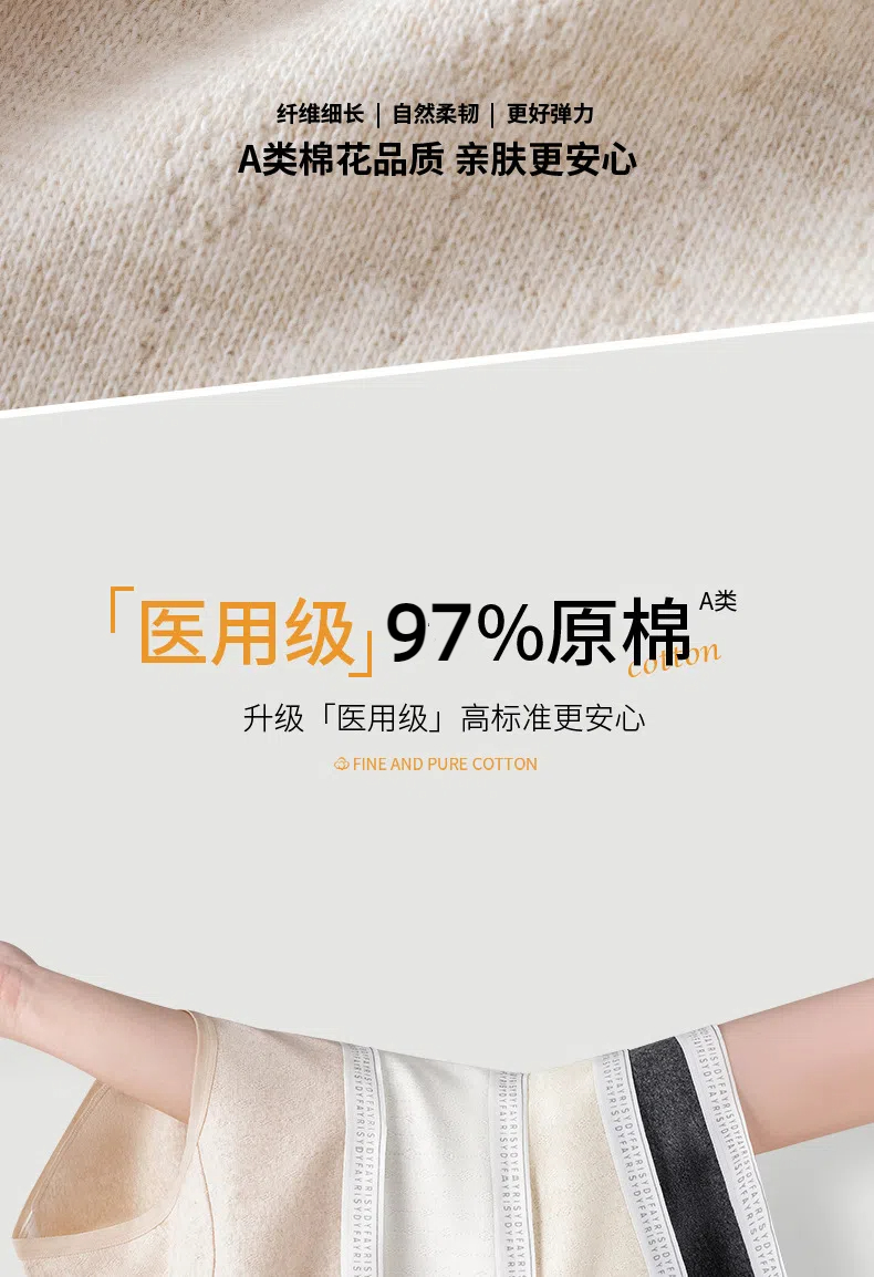 【7A原棉 医护级纯棉内裤】A类一等品 棉花届尖子生 脱脂棉 柔软透气 更健康 透气不闷汗 加长棉裆 延长包裹防溢漏