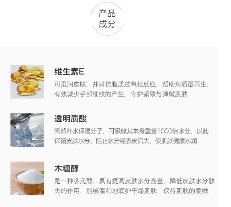 拥有一双娇嫩、柔滑的玉手。此款护手霜有修护作用(含尿素),七天内让你的手恢复生机,皮肤变的细腻幼滑。易吸收得黎又清爽, 用一星期后明显更柔滑!尿素有软化角质层及保湿的功能,赋予皮肤饱满光滑柔嫩,有效改善皮肤龟裂现象。特别推荐给手部皮肤干燥的人,只要一点点就可以滋润全手,快速渗透,易吸收,里面红色橘色的小颗粒是尿素精华。
