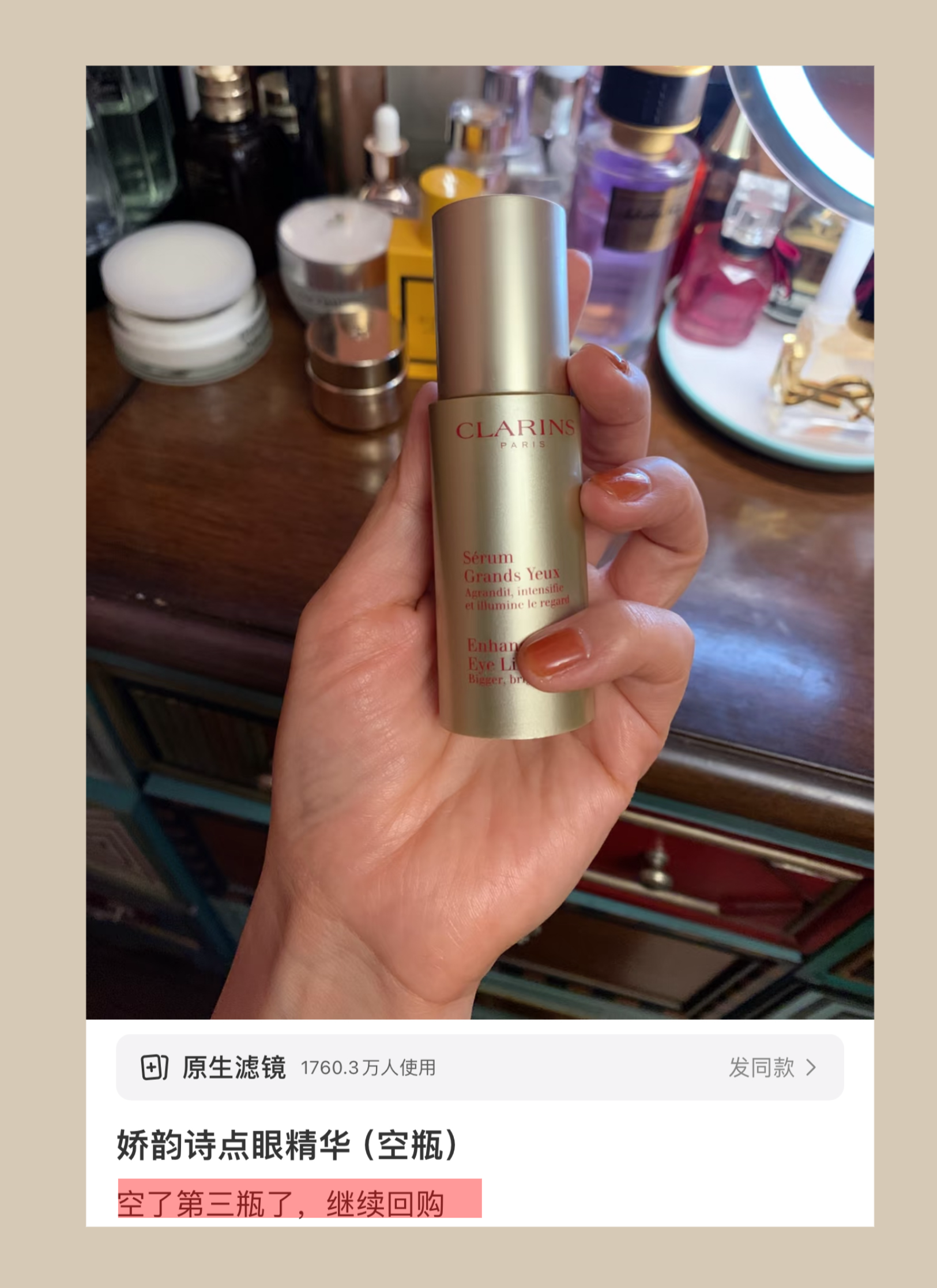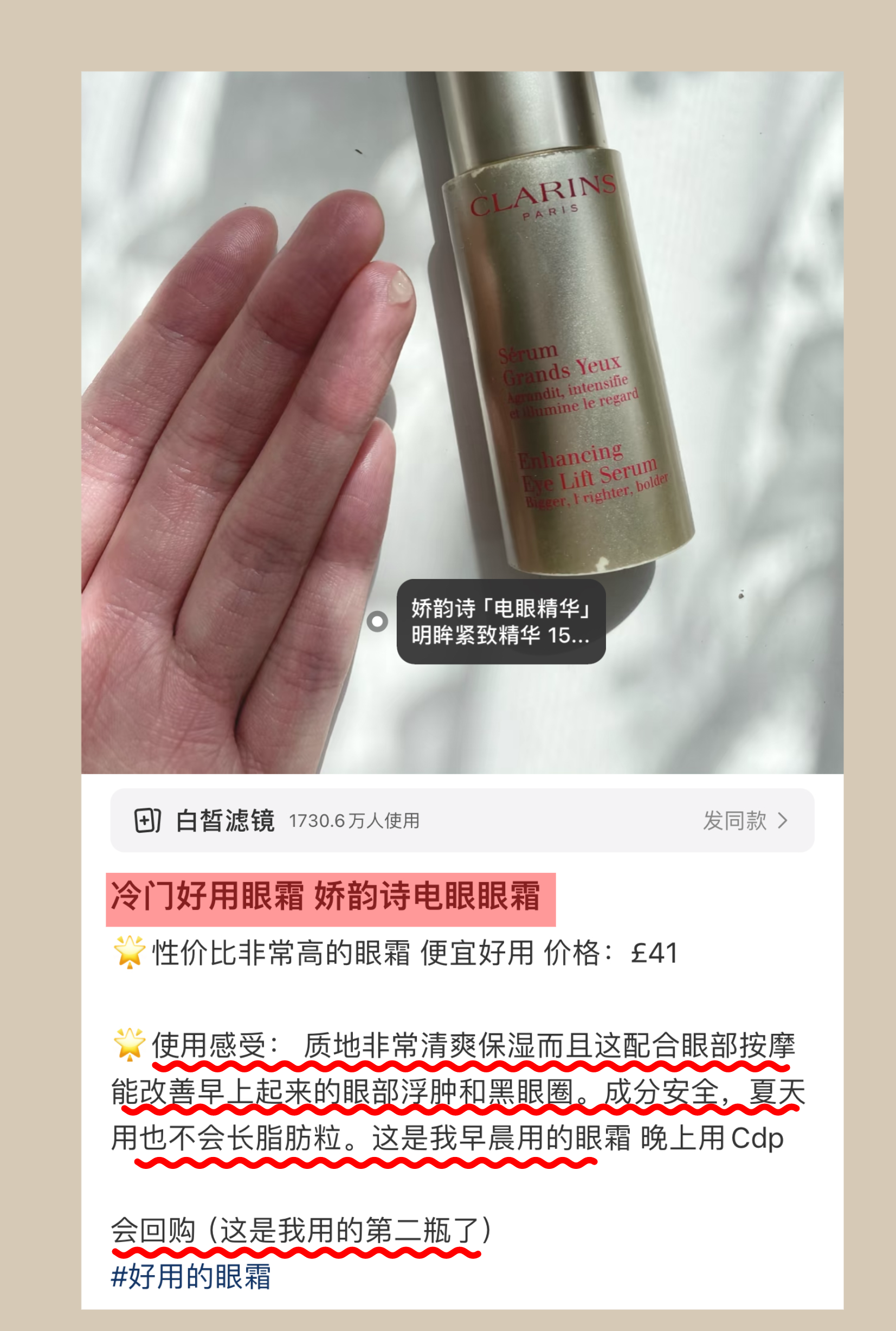 尤其是眼皮松弛有细纹的,用完眼周润润的很充盈💧
