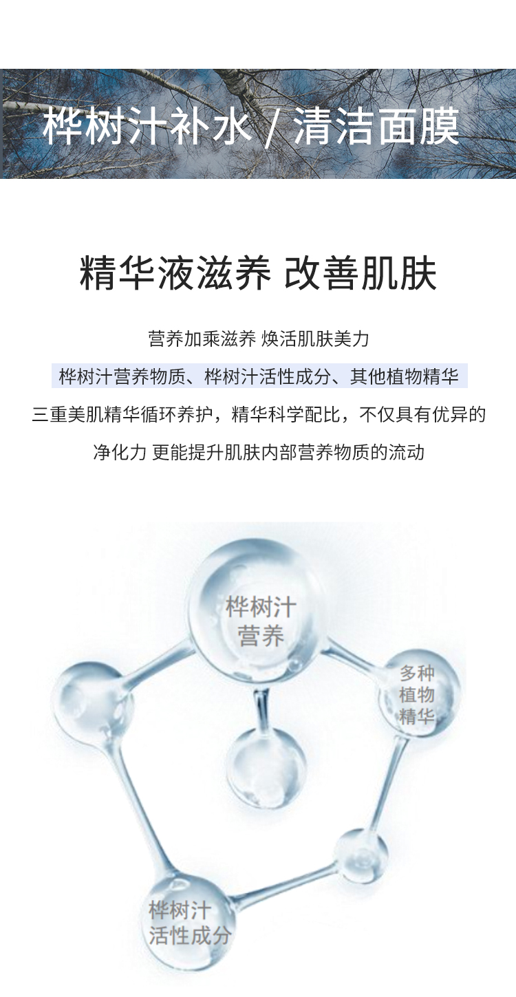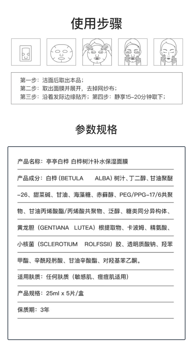 【25年新白桦树汁面膜~限时买2送1】无水小分子 满满桦树汁浓缩精华 舒缓修复 清爽滋润 活肤提亮