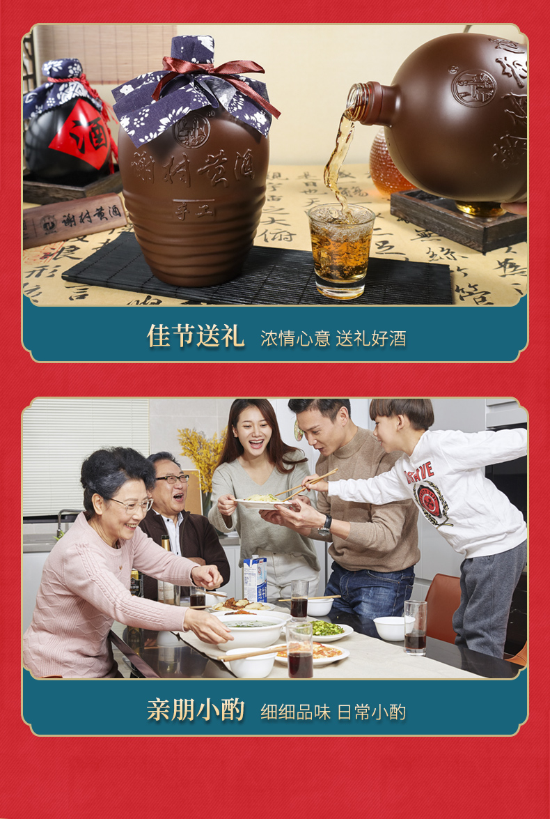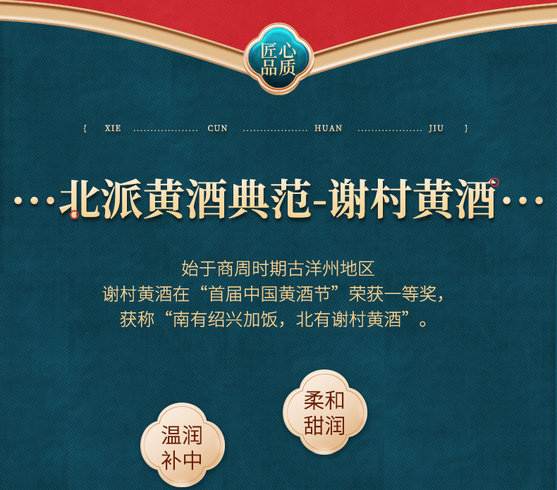 谢村桥牌 中华老字号手工谢村黄酒1L*2坛