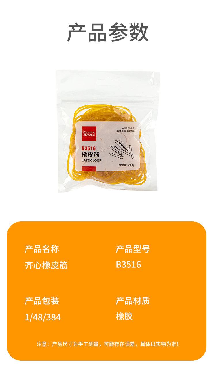 齐心 B3516 橡皮筋 袋装 30g 1袋 橡胶圈橡皮筋松紧带弹力捆扎圈